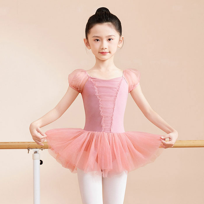 子供バレエレオタード チュチュ 半袖 バレエ レオタード スカート付き 可愛い チュール バレエ用品 レッスン着 お姫 バレエ練功服 舞台ステージ衣装 発表会 イベント 団体お揃い キッズ ジ 学園祭