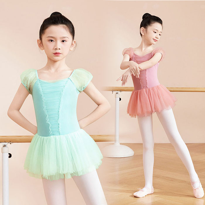 子供バレエレオタード チュチュ 半袖 体操 ダンス バレエ レオタード 豊富な品揃え ピンク グリーン 110 120 130 140 150 160 170