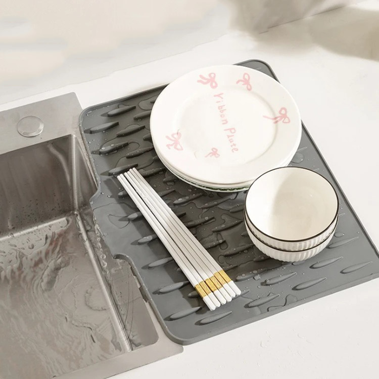洗った後の食器置き場としてオススメのキッチン水切りマット。吸水マットなので、シンクなどを直接濡らさずに、キッチンをいつも清潔に保ってくれる水切りマットです。