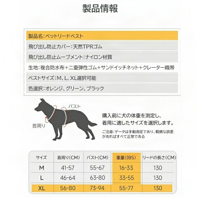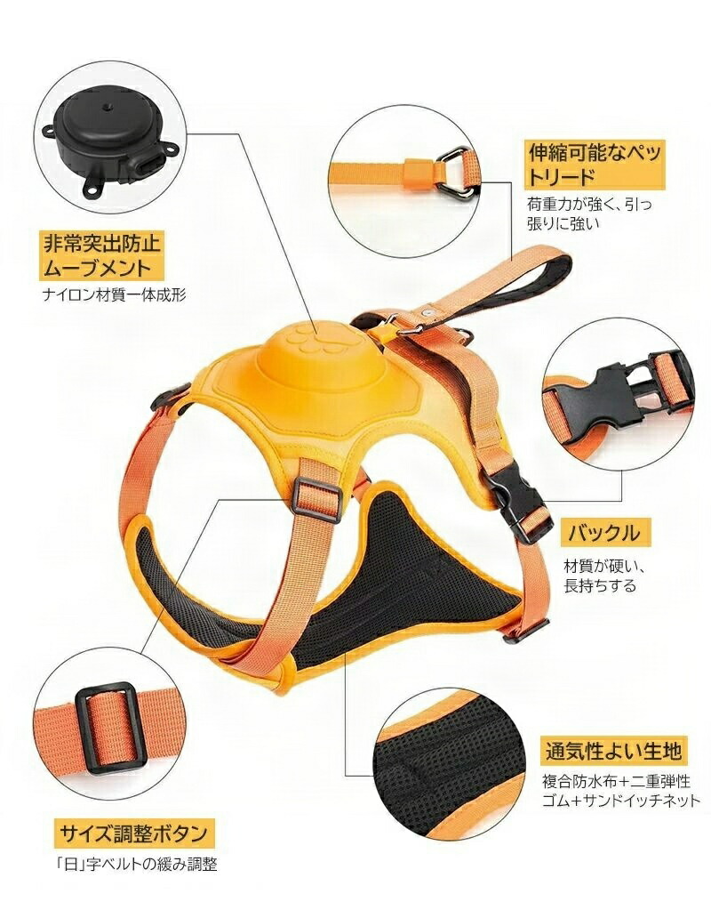 小~大型犬対応 ドッグリード 散歩用伸 犬用品 首輪 胴輪 リード リード 新作 オレンジ ブラック レッド M L XL