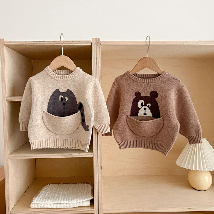 くま ネコ 長袖 ニット セーター ベ キッズ ベビー マタニティ 続々入荷中 いぬ くまA ネコ 豚 くまB 66cm 73cm 80cm 90cm 100cm