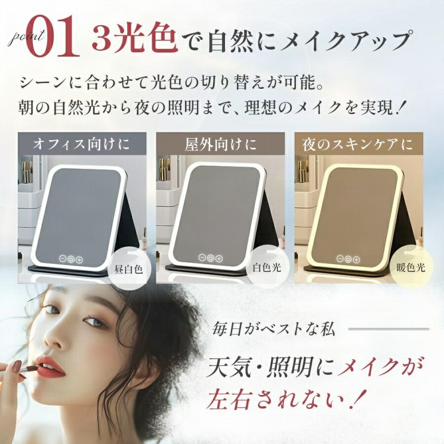 持ち ライト ドレッサー led 卓上 折りたたみ ミラー 日光 おすすめ 鏡 軽量 コンパクト かわいい 卓上ミラー