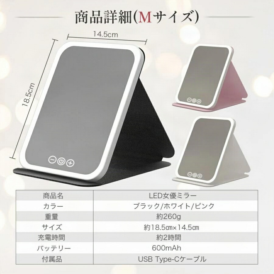 持ち ライト ドレッサー led 卓上 ブラック ホワイト ピンク Mサイズ Lサイズ