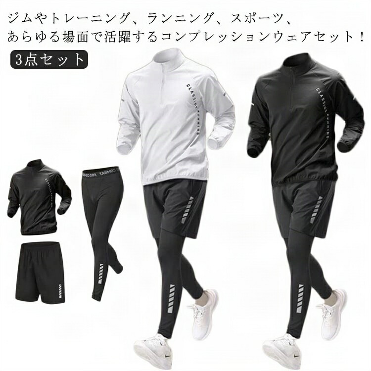 トレーニングウェア コンプレッションウェア スポーツウェア ジムウェア ランニングウェア 長袖 スポーツ 冬 ジャージ 半袖 3点セット 上下セット オールシーズン 吸水速乾 セットアップ 接触冷感