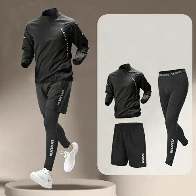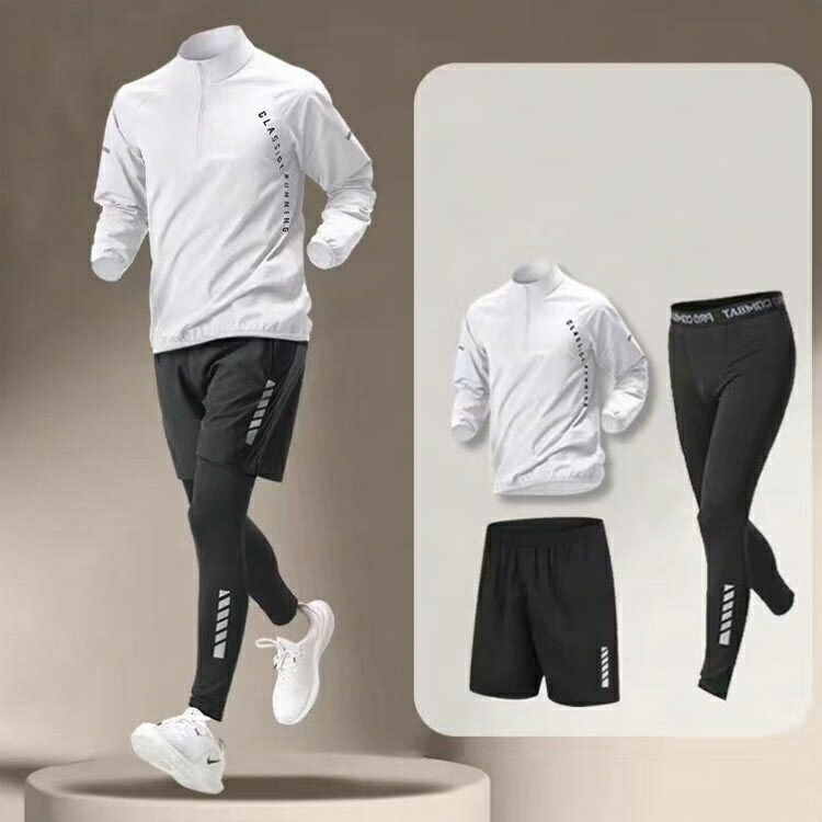 ジムやトレーニング、ランニング、スポーツ、 あらゆる場面で活躍するコンプレッションウェアセット!これ一つで、オールシーズンスポーツに対応♪ジャケット・スパッツ・ショートパンツコスパ 抜群な3点セットです。