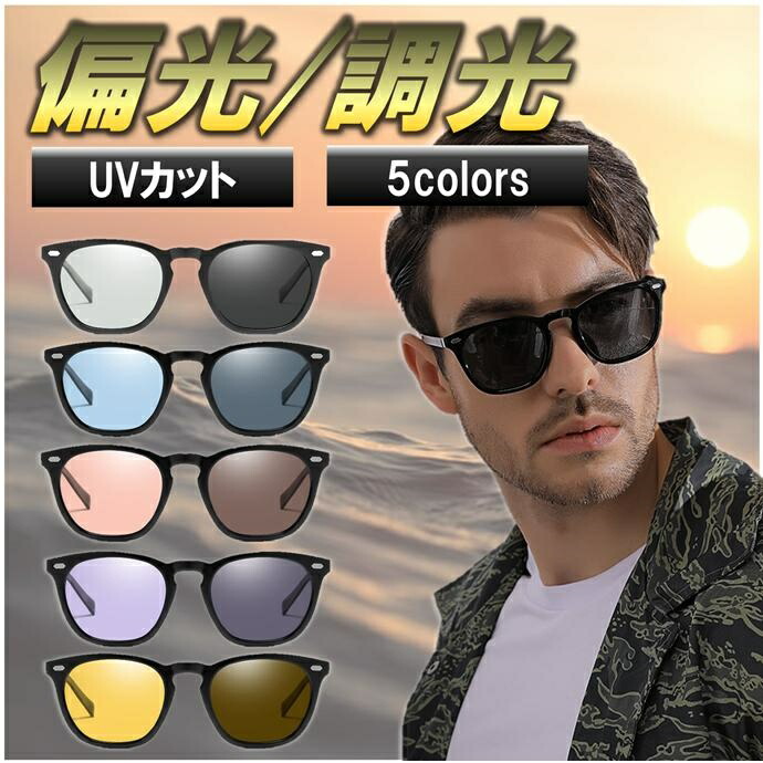 サングラス 偏光 調光 スポーツ 運転 偏光サングラス 調光レンズ サングラスケース サングラスホルダー 調光サングラス 軽量 UVカット スポーツサングラス ドライブ ウェリントン メンズ レ 釣り