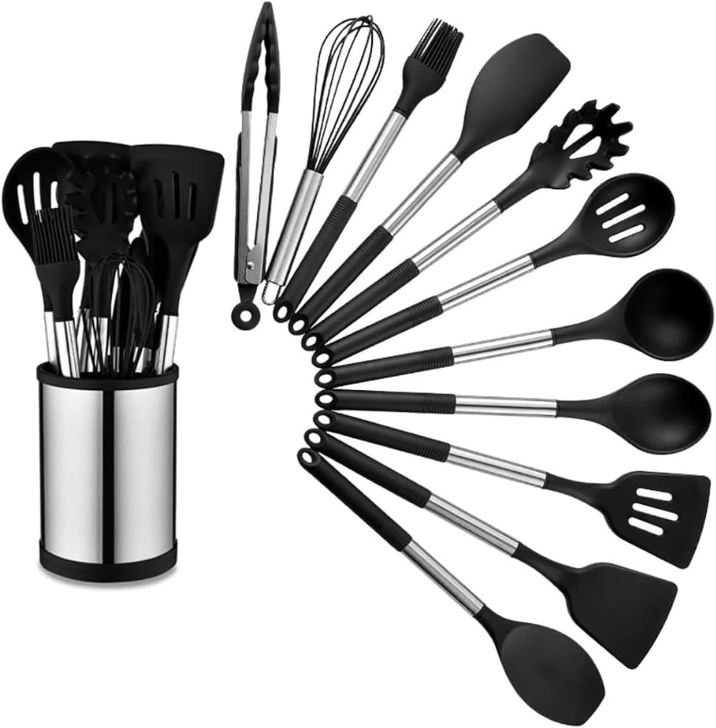 キッチンツールセット シリコン 調理器具 11点セット シリコン台所用品セット クッキングツール 器具 キッチン用品セット 耐熱シリコン ステンレス鋼ハンドル 台所用品 スパチュラ スプーン ブ 調理