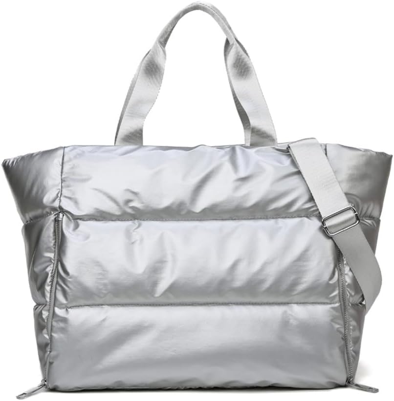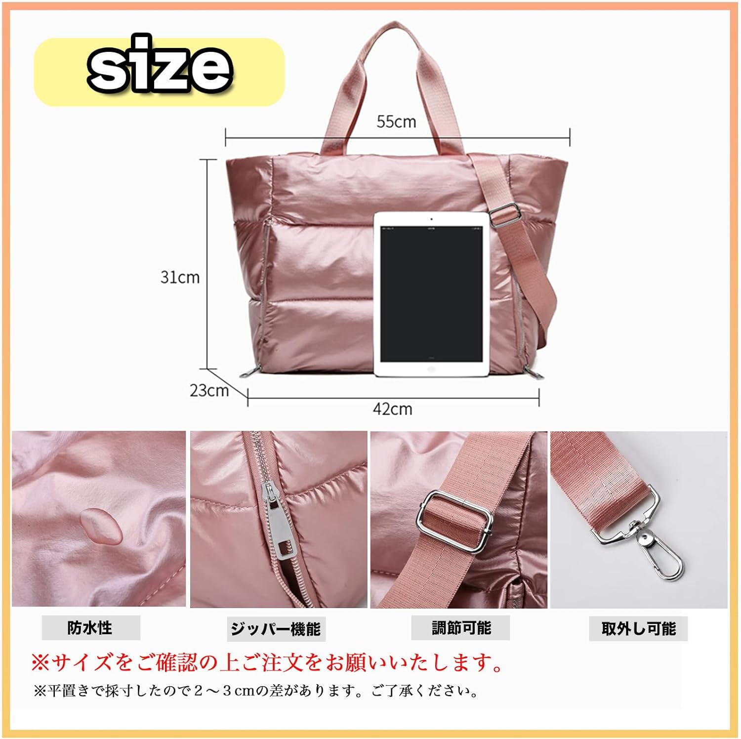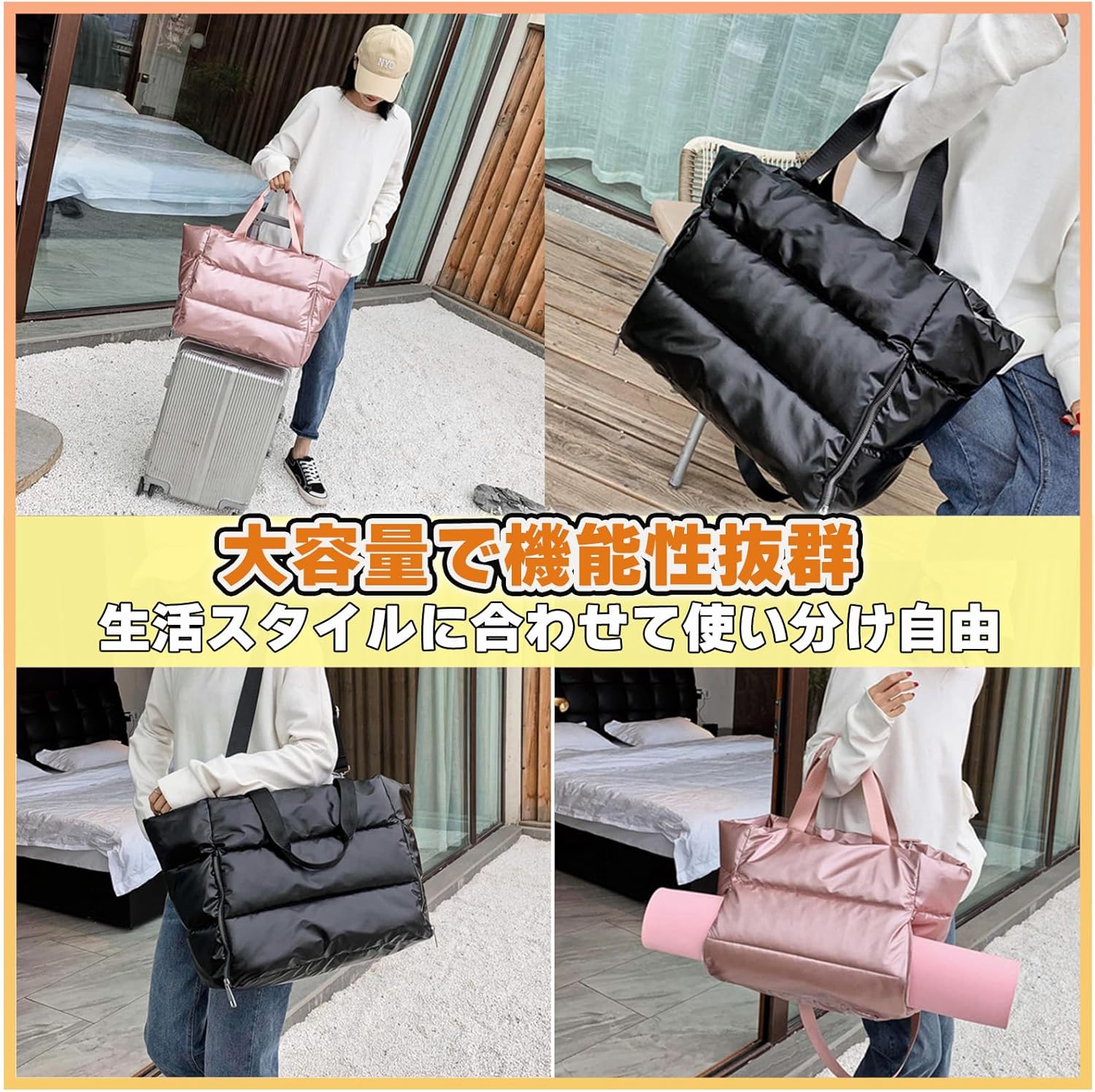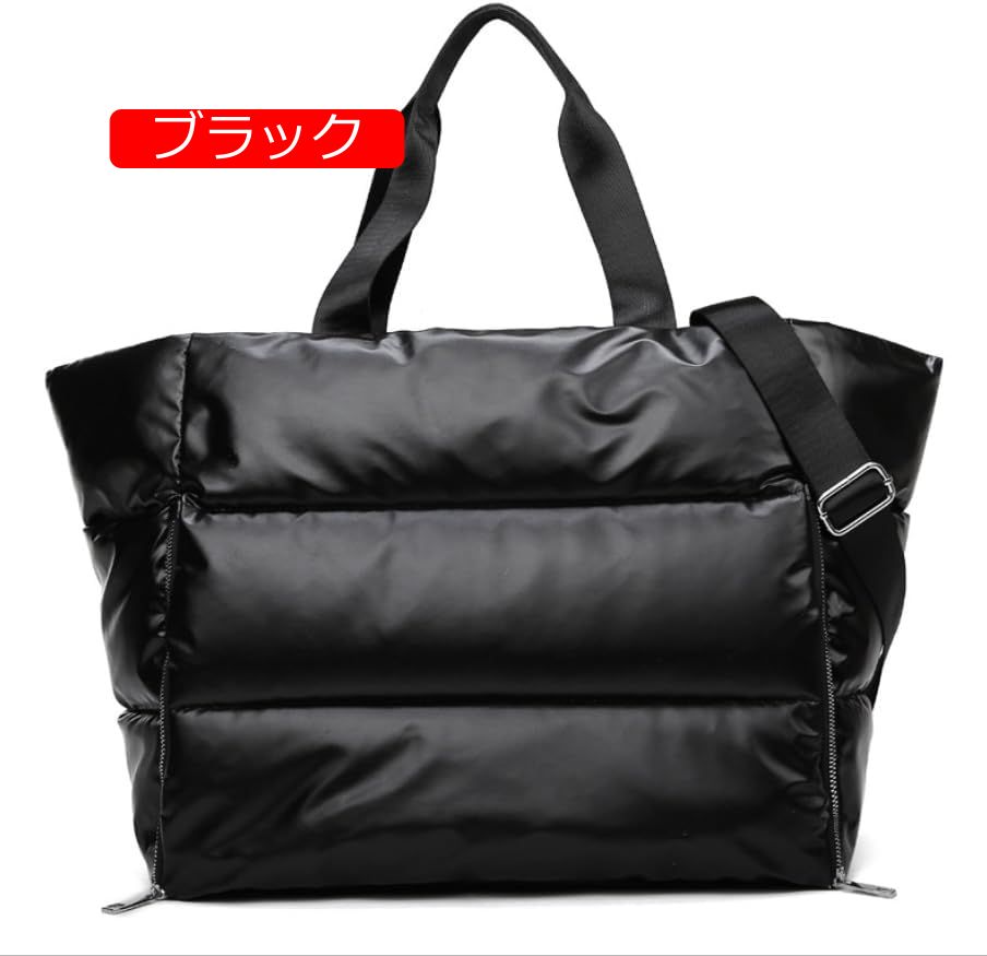 光沢感があり、ぷっくりしたデザインが可愛らしく、ふわふわ感が特徴なのでどのようなコーディネートにも馴染むデザインです。調節可能なショルダーベルトもあるので、シーンに応じて、肩掛け 斜めがけ トートなで使い方は自由です。
