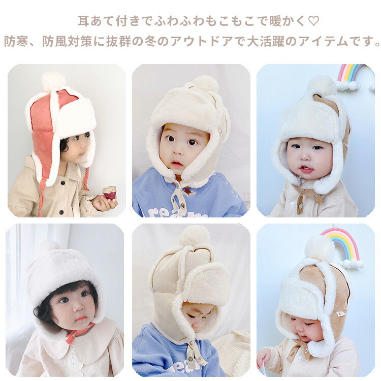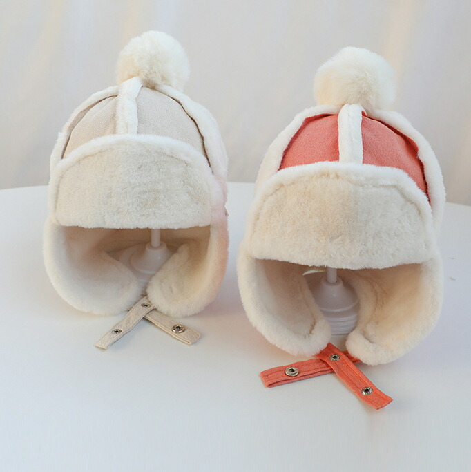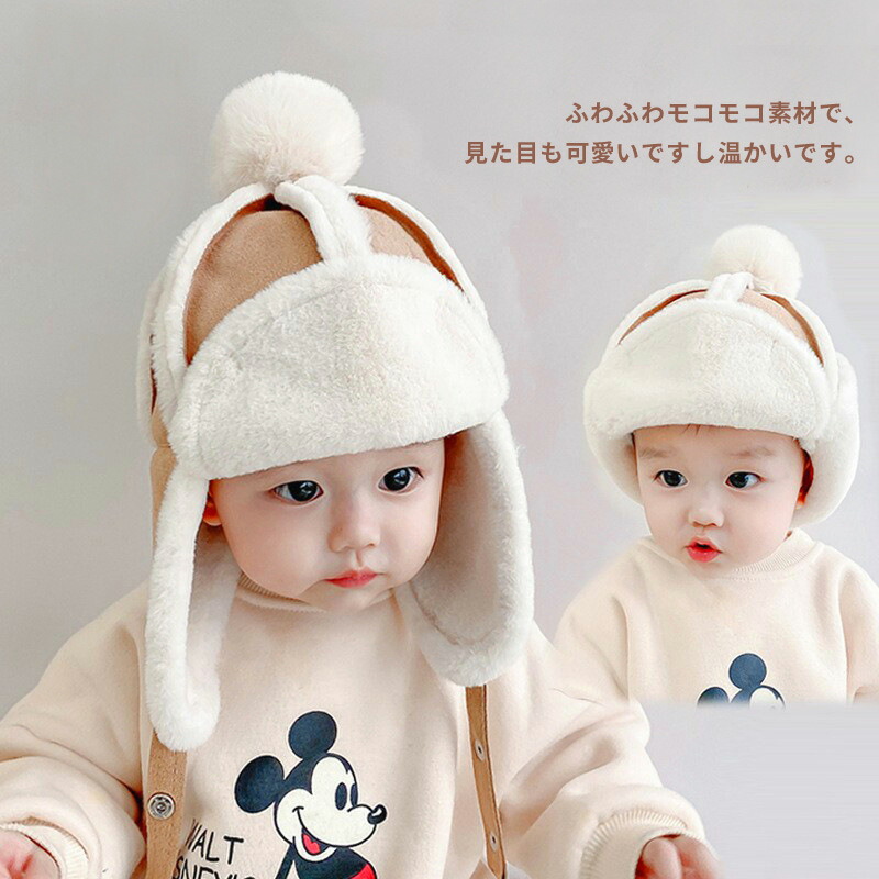 パイロットハット ベビー 赤ちゃん 帽子 飛行帽 秋冬 耳まで防寒 キッズ 子供 ポンポン付き フライトハット モコモコ 男の子 女の子 厚手 裏起毛 防風 保温 キャップ 雪遊び スキー スポ 幼児