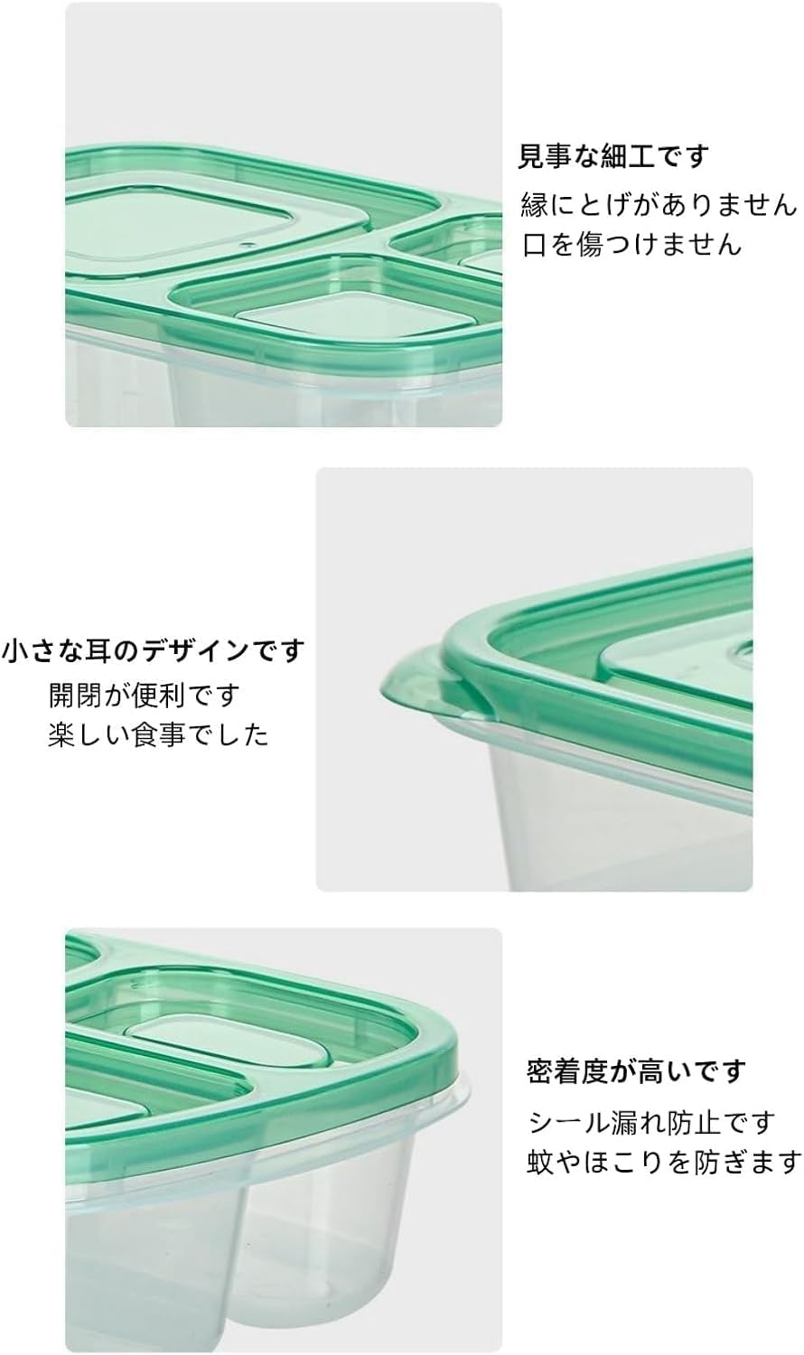 冷凍弁当箱 タッパー 仕切り付き: 冷凍庫、冷蔵庫、電子レンジ、食洗機に対応。食品の鮮度を保ち、安全に保管できます。