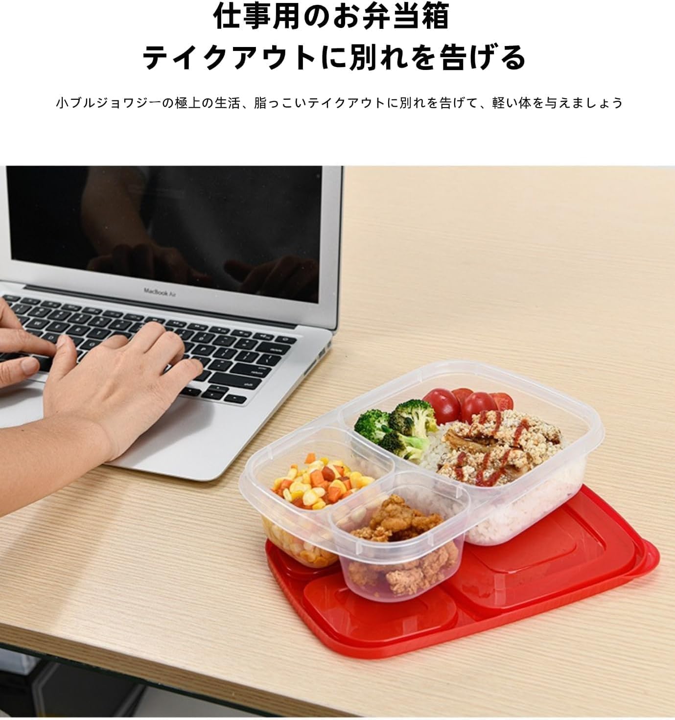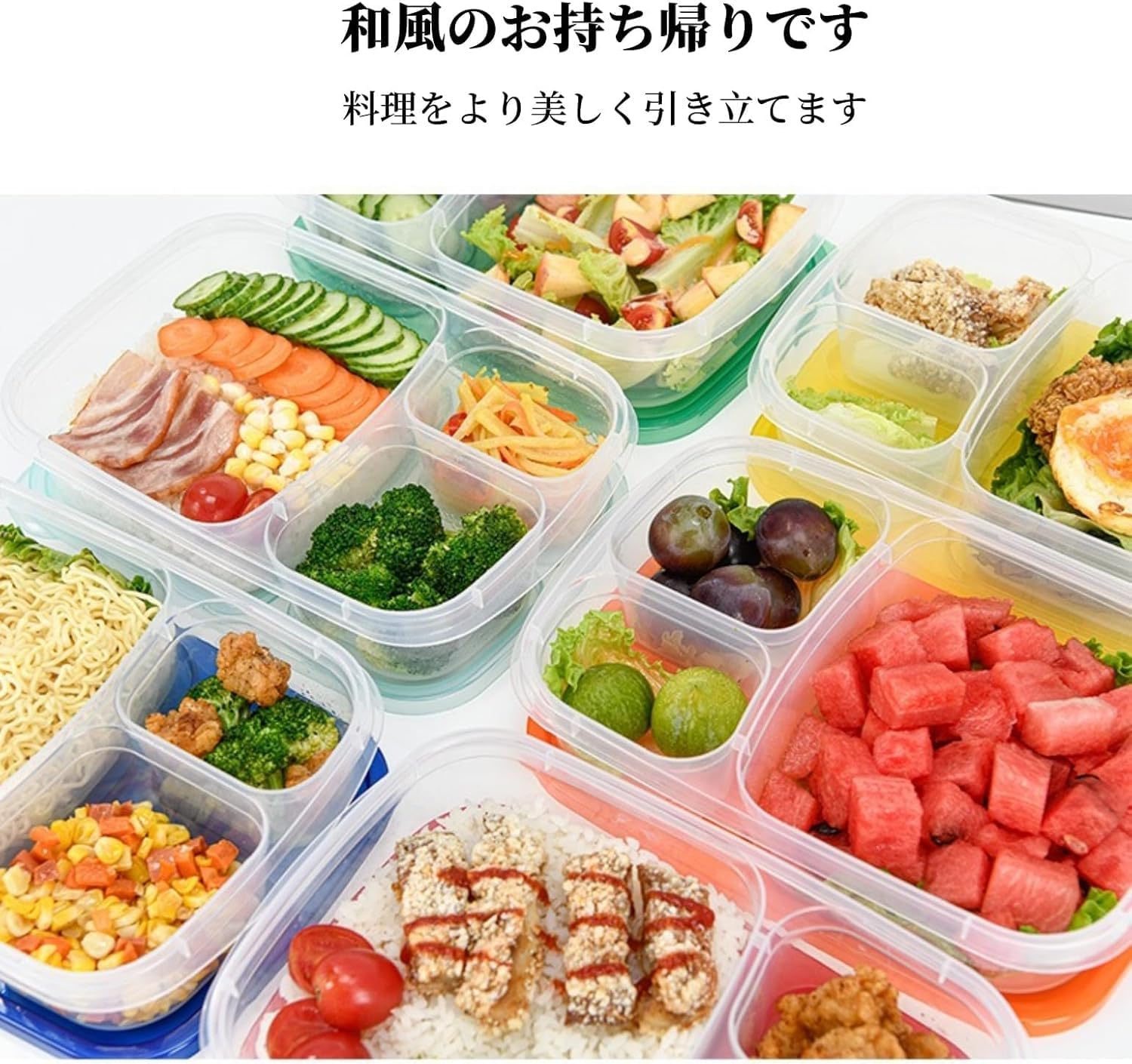 弁当用 作り置き: 仕切り付きで、作り置きのお弁当も綺麗に収納できます。冷蔵庫内での食品の相互影響を防ぎます。