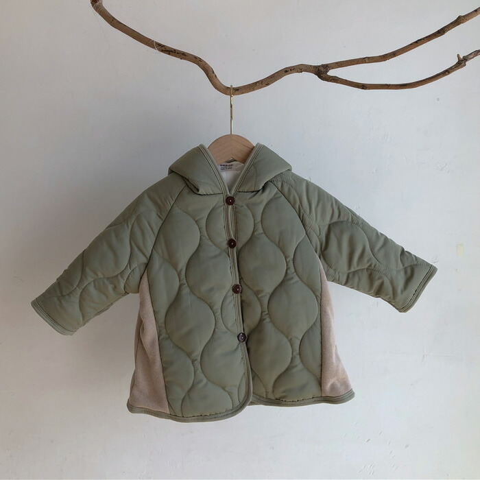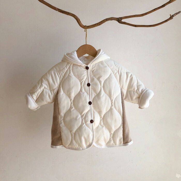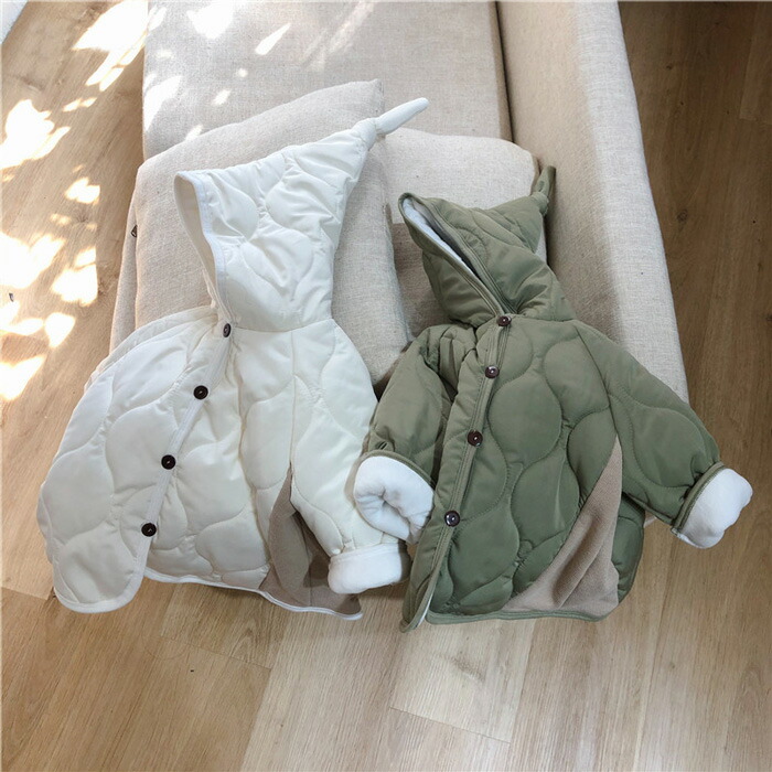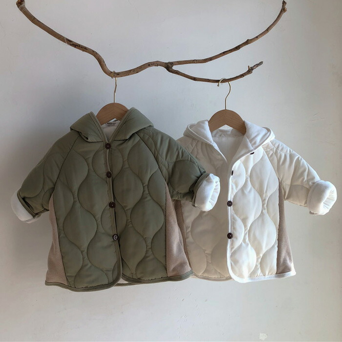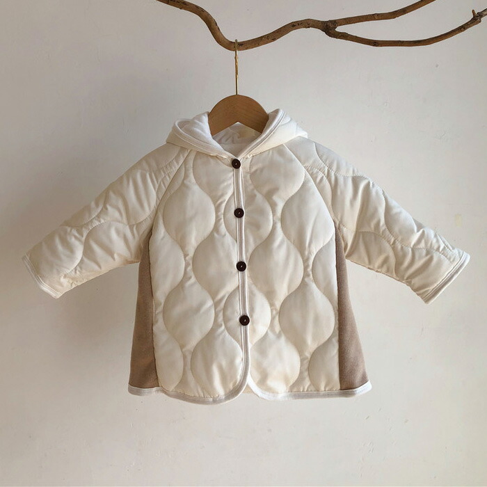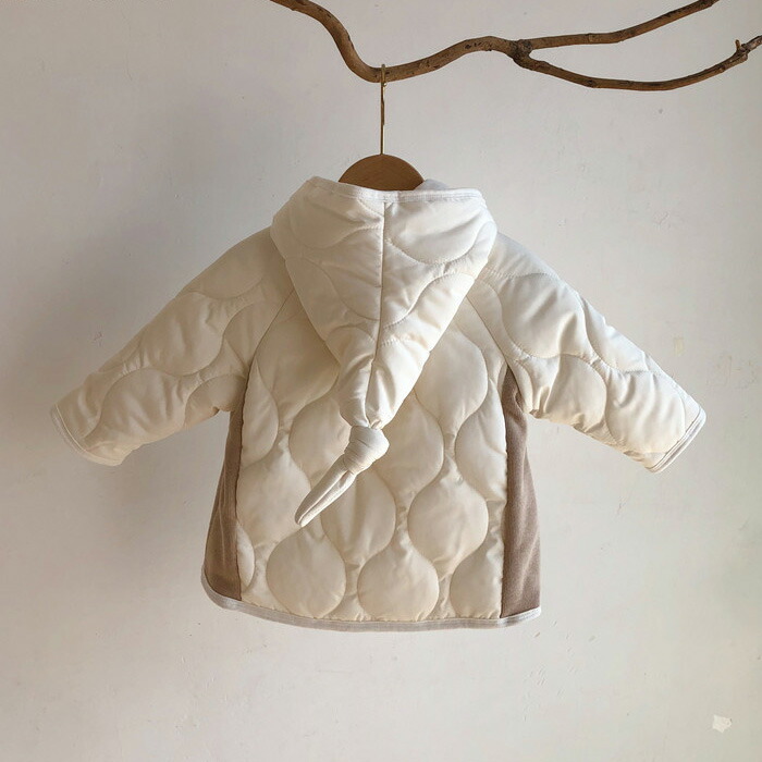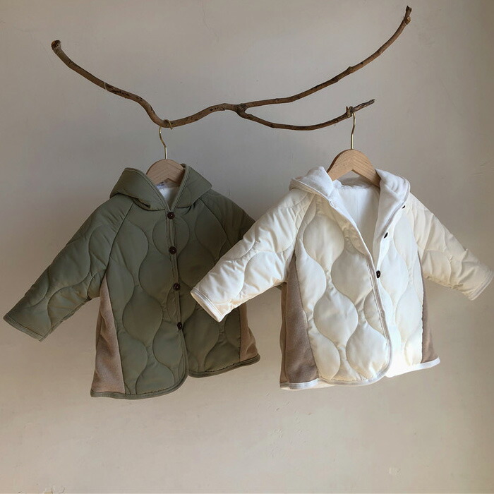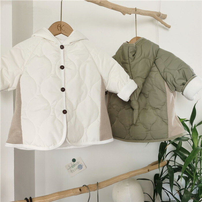 ベビー キッズ キルティング ジャケット 裏起毛 コート 赤ちゃん 男の子 女の子 ユニセックス アウター 秋 冬 中綿コート フード付き トレンチコート 韓国子供服 子ども服 ナチ トップス