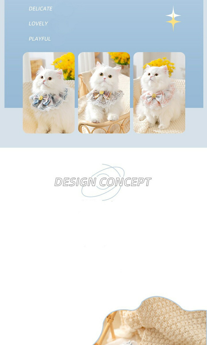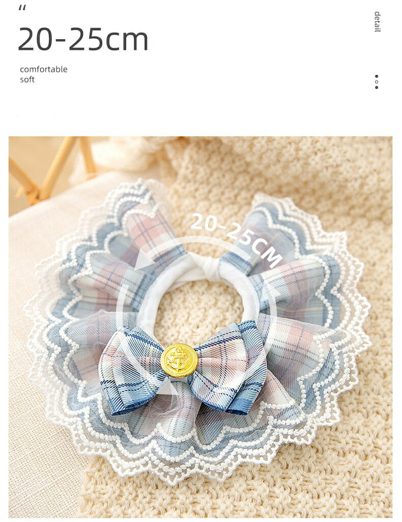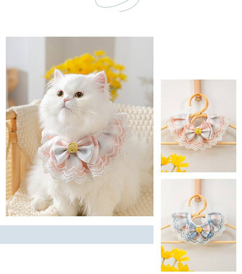 可愛いレースデザイン、素敵な蝶結の装飾があり、ペットをもっと可愛くさせます。アクセサリーに使うだけでなく、ペットのよだれが自分の毛を汚すことを防げます。