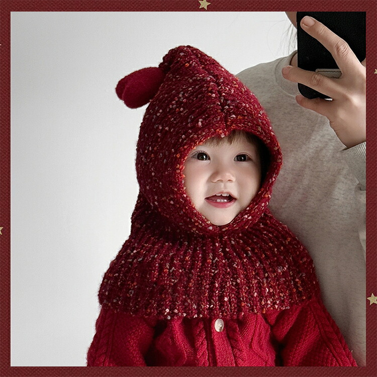 ベビー バラクラバ フードウォーマー クリスマス SNS映え かわいい 帽子 ネックウォーマー フード付き 女の子 男の子 秋冬 寒さ対策 防風 調節可能 キッズ 暖かい 子供 通園 柔らかい
