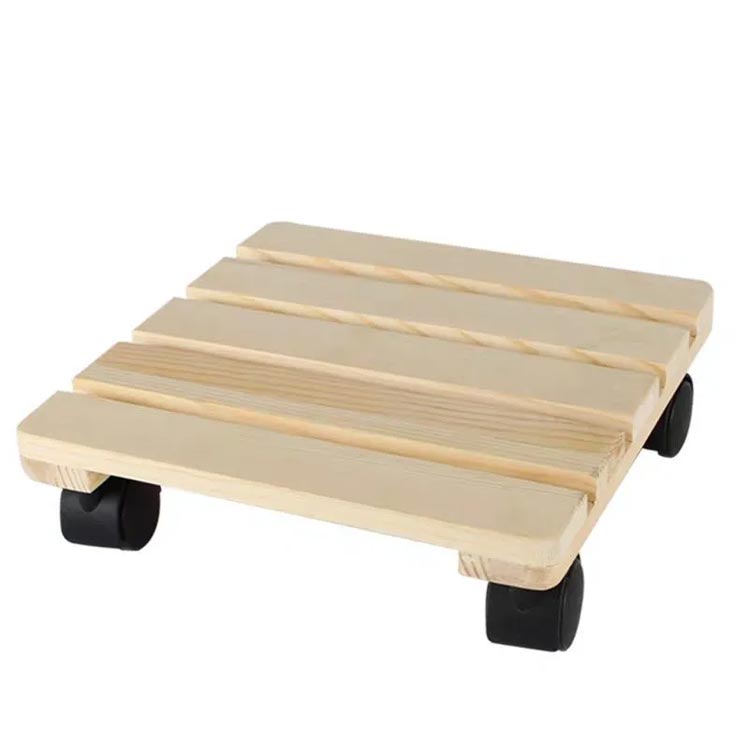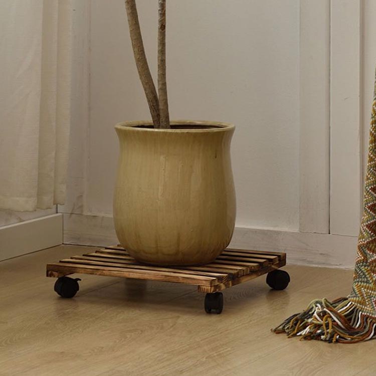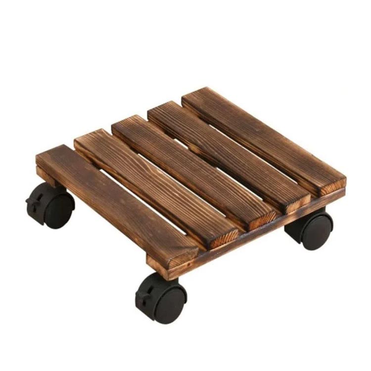 キャスター付きの木製鉢置き台。