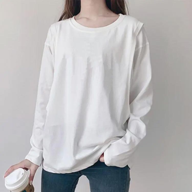 ロング丈 トップス 無地Tシャツ 体型カバー 授乳口付き クルーネック インナー 春 Tシャツ 安心 長袖 秋 授乳しやすい マタニティ 便利 ティーシャツ チュニック 授乳服 おしゃ 丸首