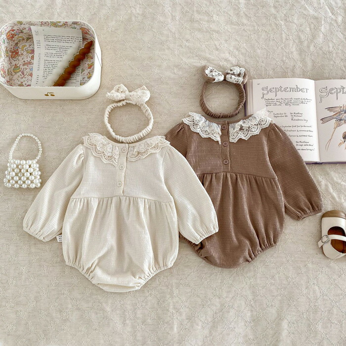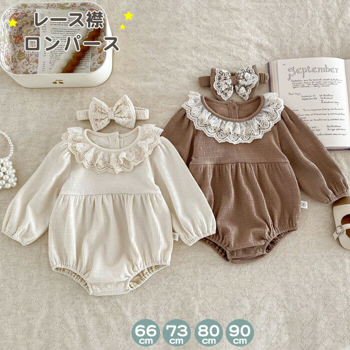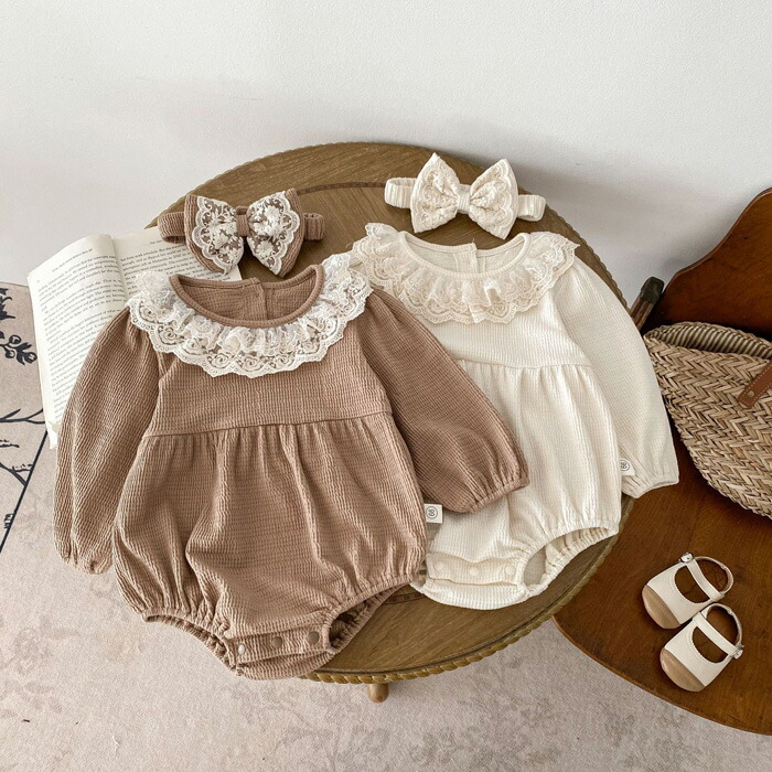 ベビー服 長袖 ロンパース ワッフルロンパース セット ヘアバンド キッズ ベビー 赤ちゃん レース襟 カバーオール 新生児 女の子 子ども フォーマル お宮参り お食い初め 服 七五三
