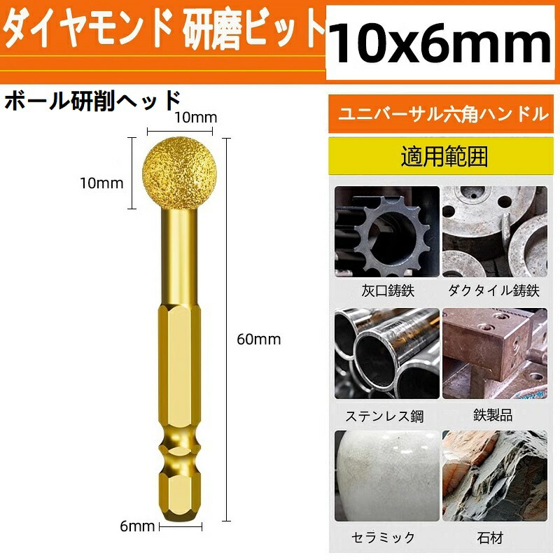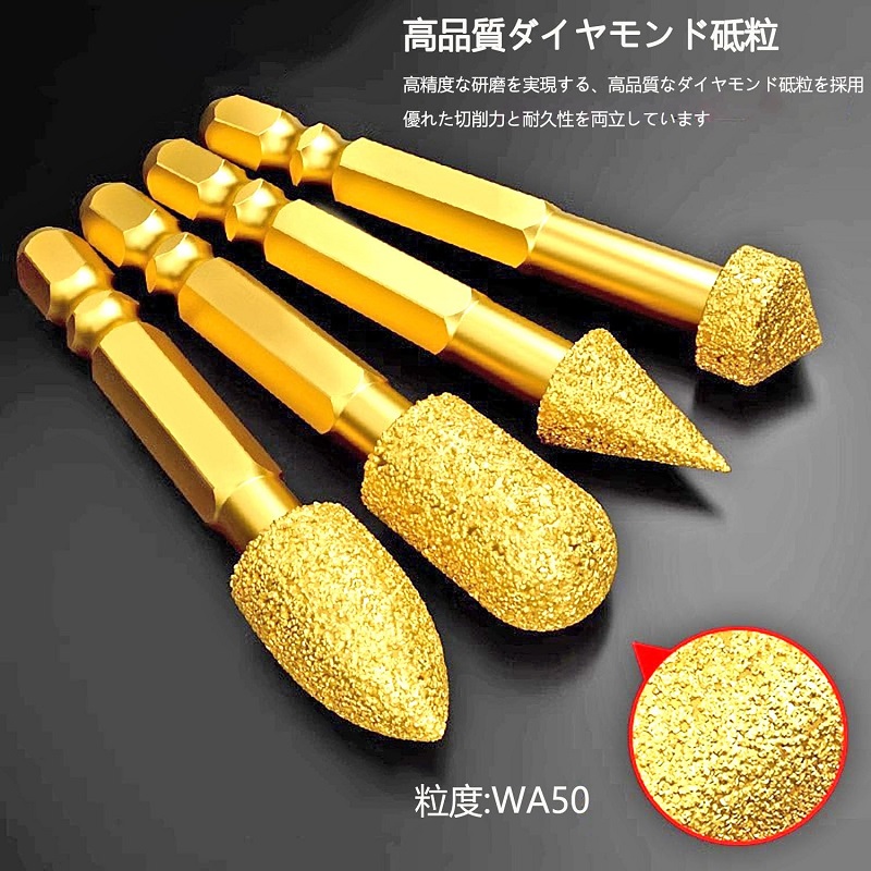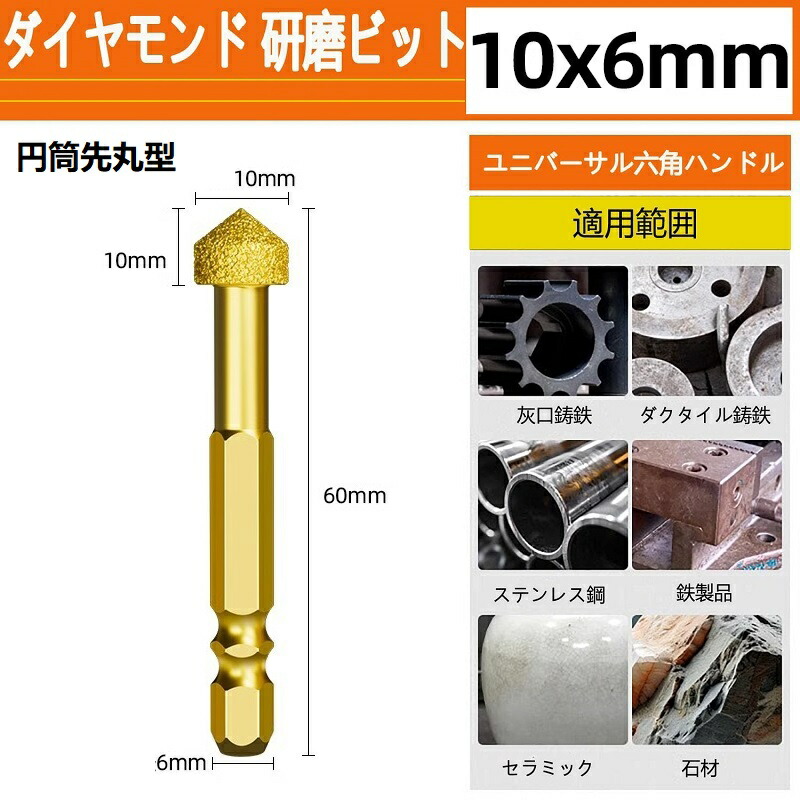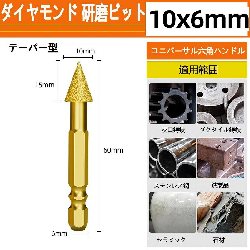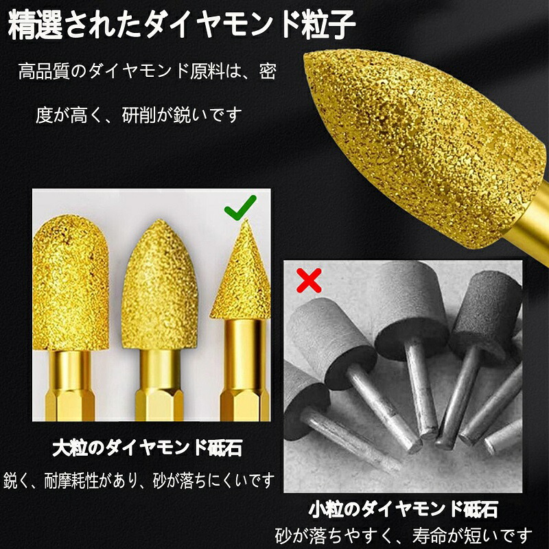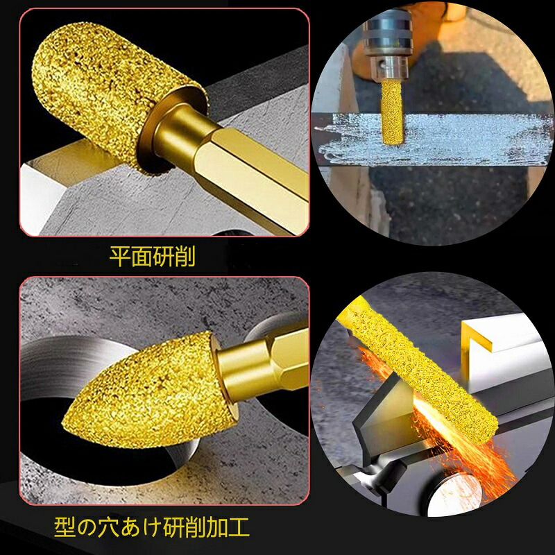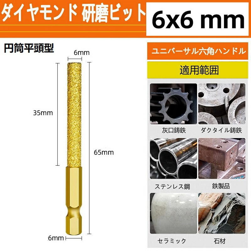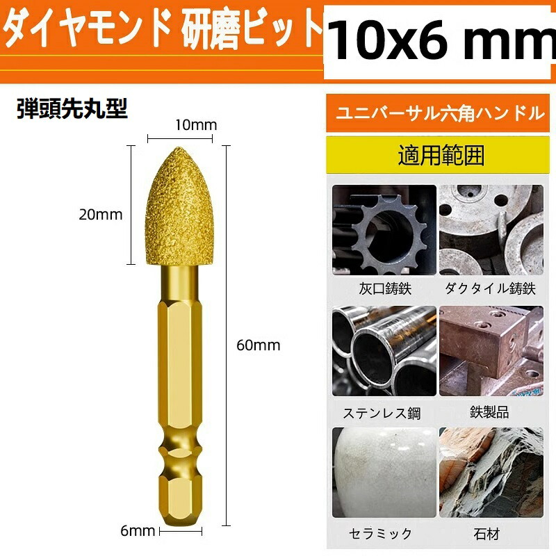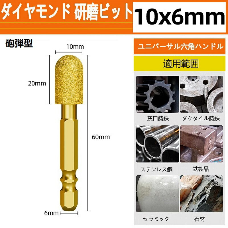 ダイヤモンド 研磨ビット ステンレス用 軸付砥石 六角軸 ダイヤモンドバー ダイヤモンド研削ヘッド 砲弾型鉄 石材 陶器 金属用 超硬刃