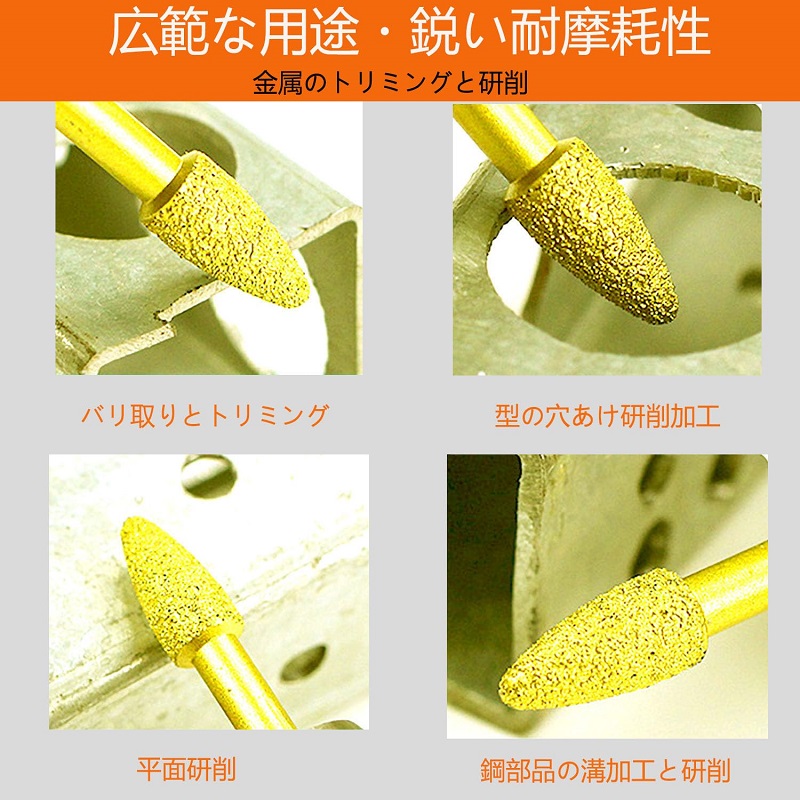 多様な用途: 金属、セラミック、石材など、幅広い素材の研磨、研削、バリ取りに対応、注意する:アルミ合金、銅、木材、硬度の低い材質での使用は推奨されません