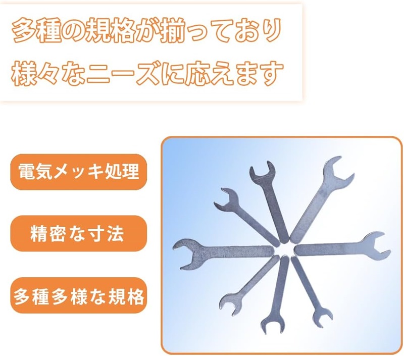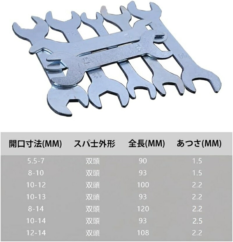 【商品仕様】セット内容:薄型六角レンチセット7点セット。サイズ:7種類(5.5-7mm/8-10mm/8-14mm/10-12mm/10-13mm/10-14mm/12-14mm)