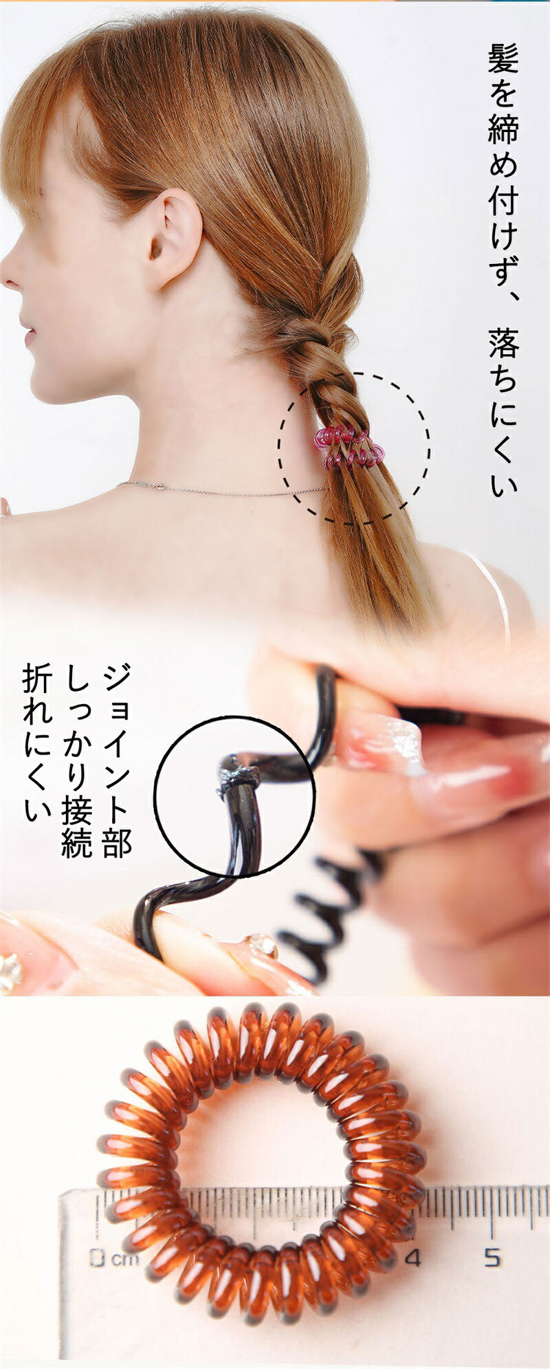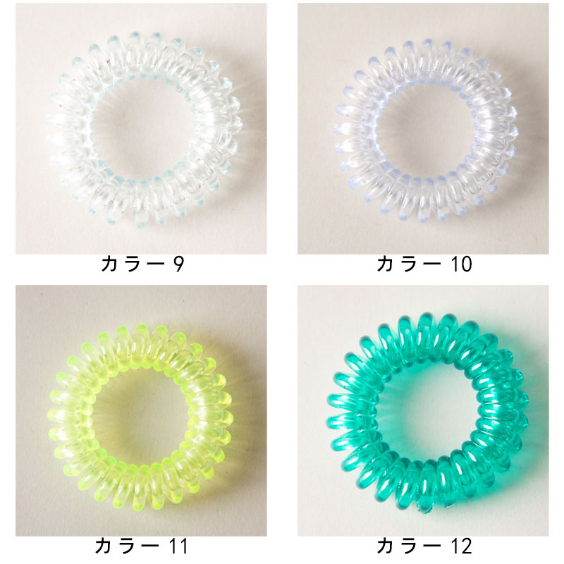 スプリングヘアゴム レディース 髪飾り 髪留め ヘアアクセサリー 跡がつきにくい ヘアアレンジ まとめ髪 透明 クリア シンプル 手首 ロッカーキー コイルキーホルダー コイルブレスレット型 コイル