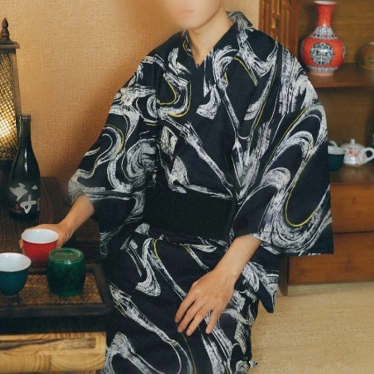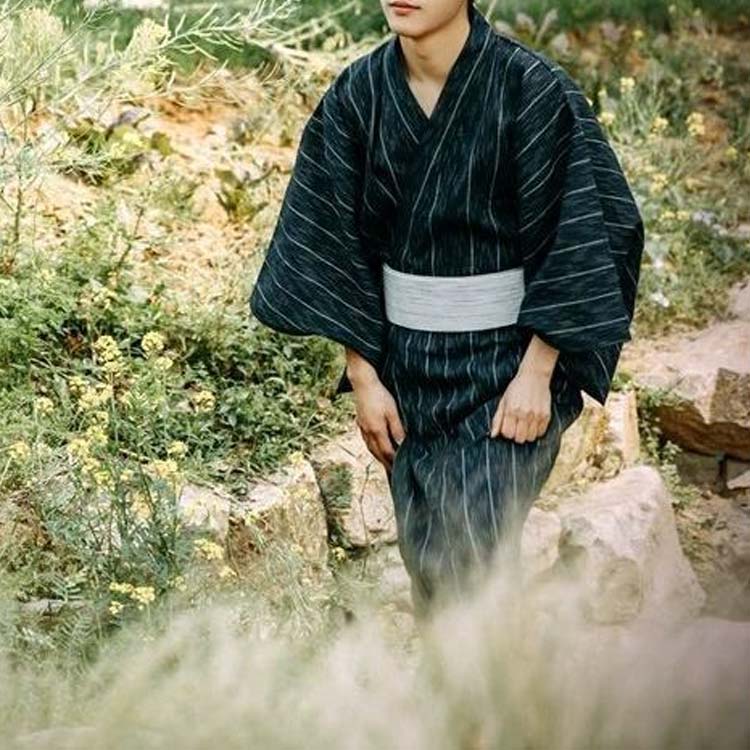 日本人男性に似合う、定番の落ち着いた縞柄・無地感の浴衣です