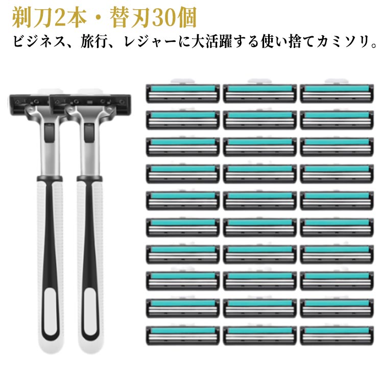 男性 女性 安全剃刀 髭剃り 剃刀2本 替刃30個 業務用 シェービング ボディ用 温泉 使い捨てカミソリ ホテル 旅行用 出張 旅館
