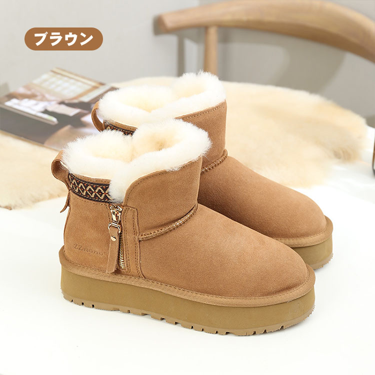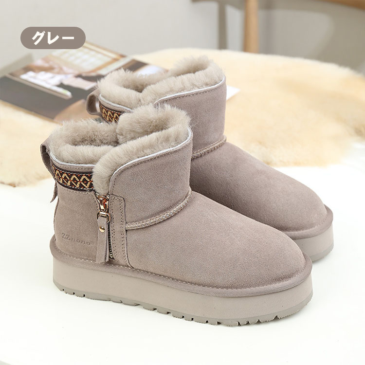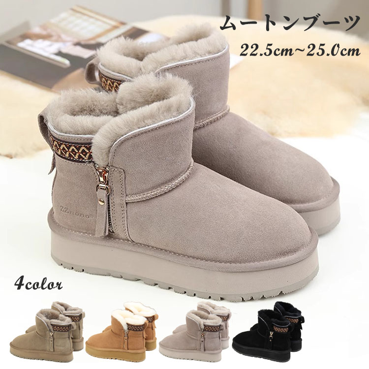 ムートンブーツ 厚底 レディース サイドジッパー 厚底ブーツ ショートブーツ 可愛い ラウンドトゥ あったか カジュアル スエード シューズ お洒落 通勤 通学 美脚 暖かい おしゃれ ス 歩きやすい