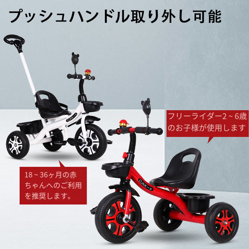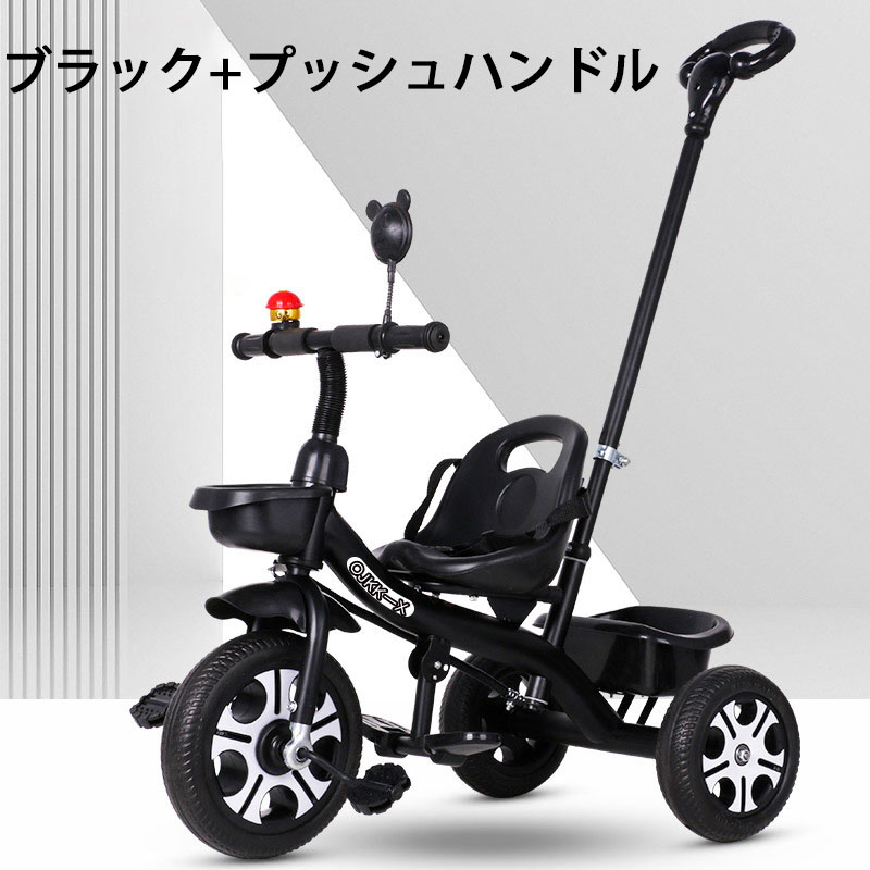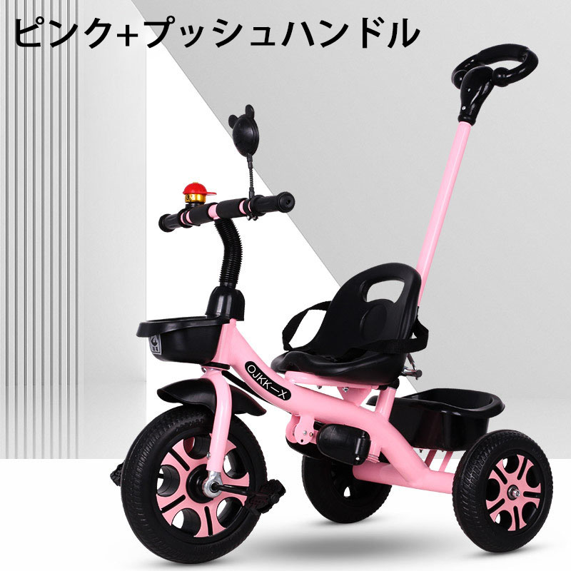 子供用三輪車 ベビーカー 押し棒付き おもちゃ ゲーム 通販 ブラック ホワイト レッド ピンク (押し棒なし) (押し棒付)