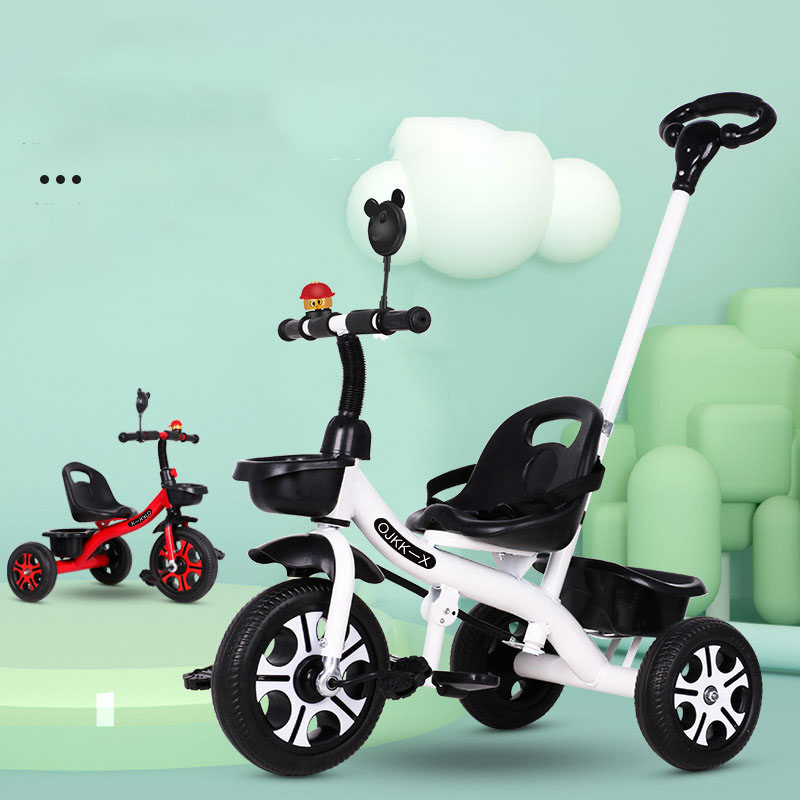 2.後部バケットバスケット付き:従来の子供用三輪車とは異なり、この車両には広々とした後部バケットバスケットが装備されており、子供たちはランドセル、おもちゃ、その他の小さなアイテムを簡単に配置でき、持ち運びや保管が簡単です。