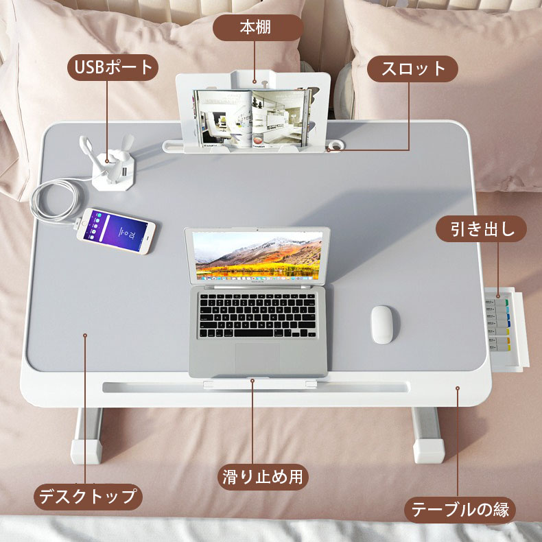 【多機能デスク】:ノートパソコンベッドホルダーは、ベッド、ソファ、または床での作業、ゲーム、読書、食事に最適です。ノートパソコンワークステーション、デスク、オフィススタンド、おやつトレイ、野テーブル、ノートパソコンベッドトレイ、ブックシェルフとして使用できます。