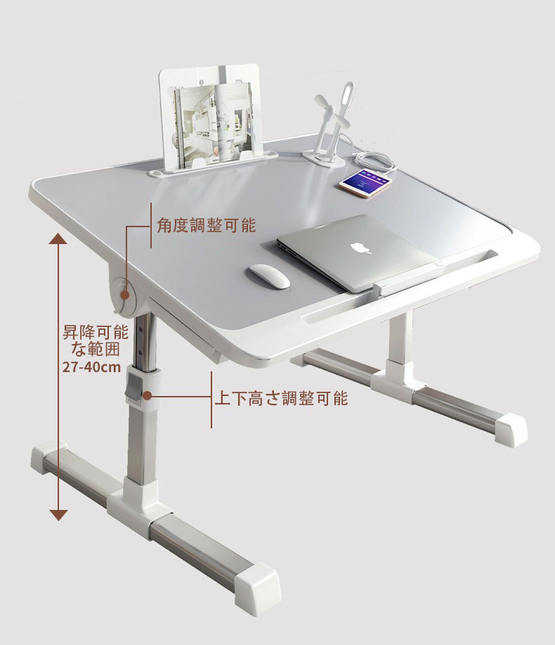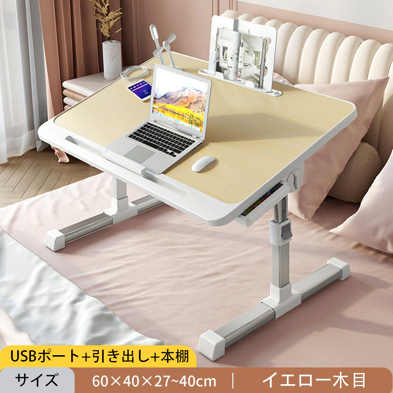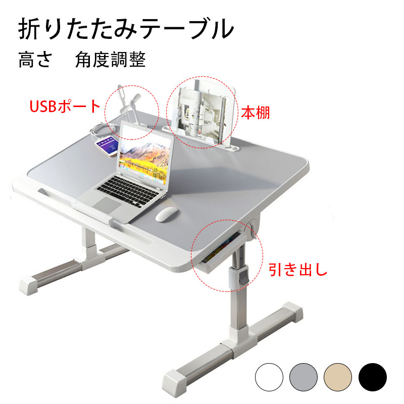 折りたたみ テーブル 幅60cm 高さ40cm 昇降式 高さ調整 一人用 折りたたみデスク サイドテーブル ミニ ローテーブル ナイトテーブル おしゃれ 昇降 引き出し付 角度調整 丸角 軽い 収納