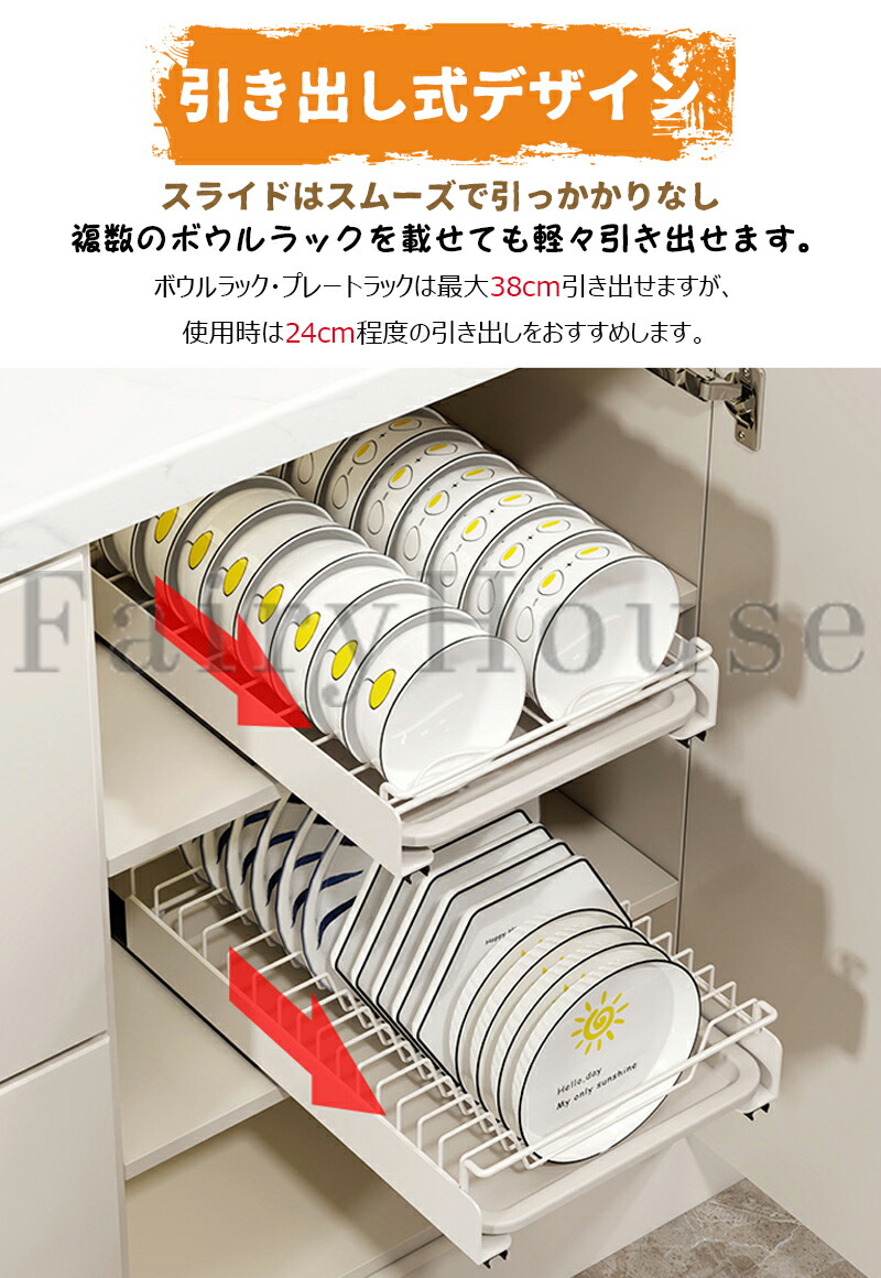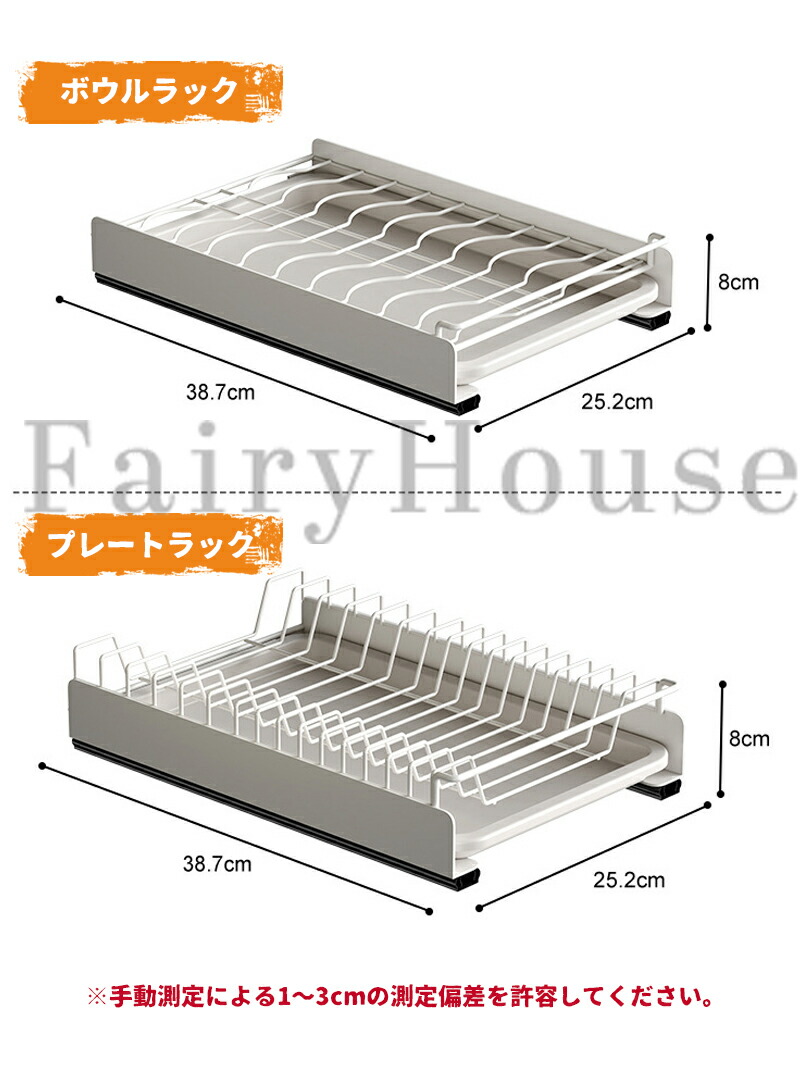 サイズ:「ボウルラック」約幅25.2cm高さ8cm奥行き38.7cm、「プレートラック」約幅25.2cm高さ8cm奥行き38.7cm