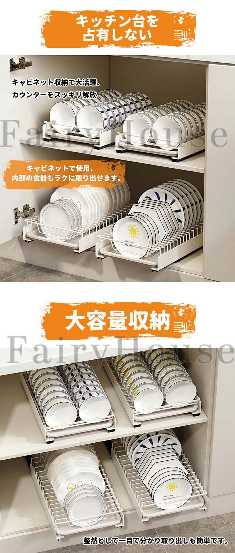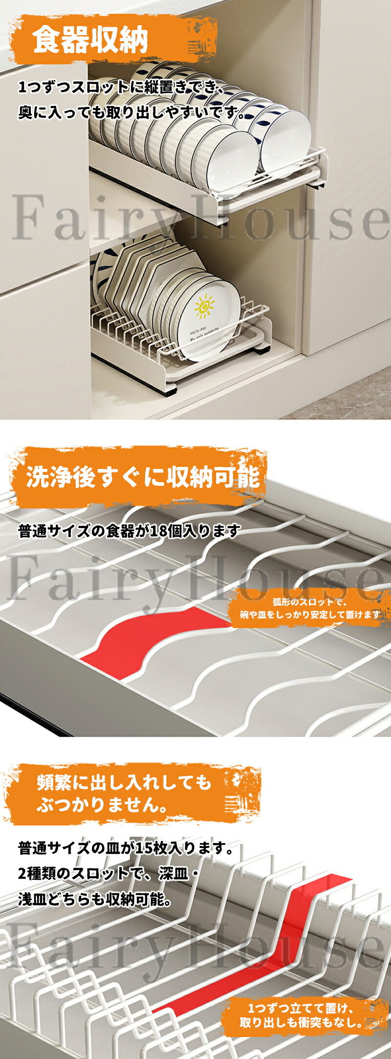 ボウルタイプは18個、プレートタイプは10個を収納できます。家族3 ~ 5人でも、気軽に食器を収納できる理想の収納棚です。