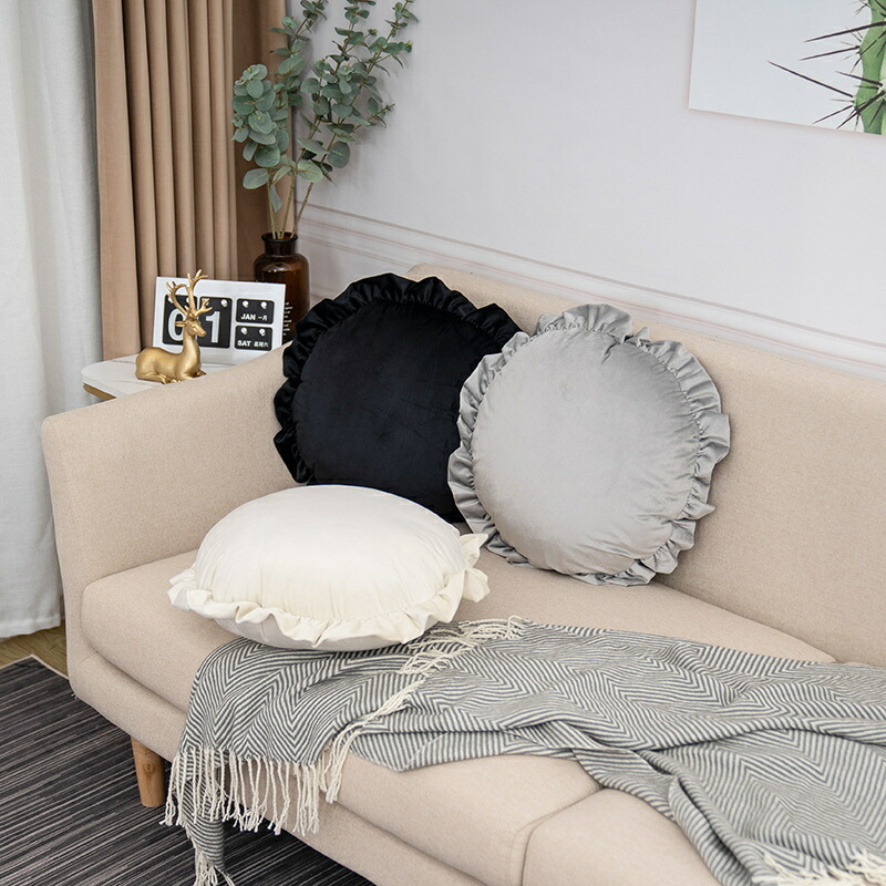 座布団 クッション 丸型 円形 おしゃれ 可愛い ラウンドクッション フロアクッション 丸座布団 姫系 フリル 花様 ベルベット 北欧 オシャレ座布団 背もたれ 引っ越し新生活 柔らかい
