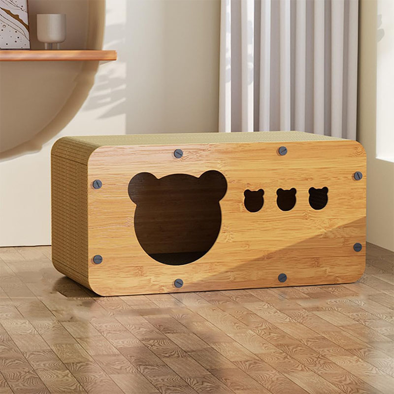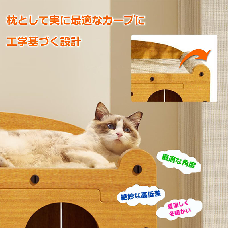 【安全な素材】商品に使われている合成木材と段ボール素材は環境に優しく、リサイクル可能です。角は全部丸く加工されており、大切な猫様を優しく守ります。
