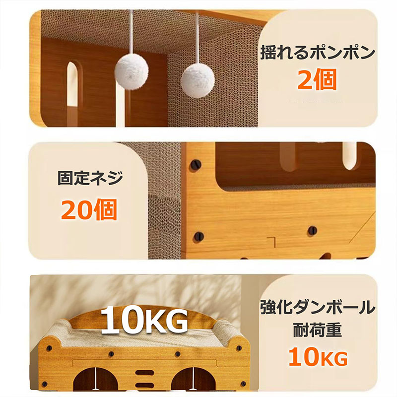 猫用爪とぎ 猫ハウス 猫タワー キャットハウス キャットタワー ダンボールハウス 爪とぎ兼ベッド 猫箱 猫ベッド 猫爪とぎボックス ネコファー 二重層 高密度段ボール ストレス解消 通気 ペ 収納簡単