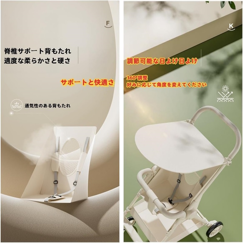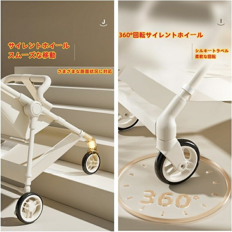このベビーカーは高品質の航空機グレードのアルミニウムで作られており、軽量で持ち運びに便利です。操作性はワンクリックの折りたたみ機能により保管や持ち運びが簡単で、360 度回転する前輪の設計により簡単に調整でき、スムーズで手間のかからない回転が可能です。