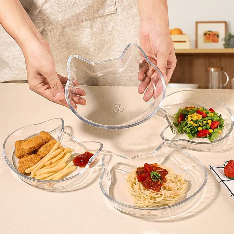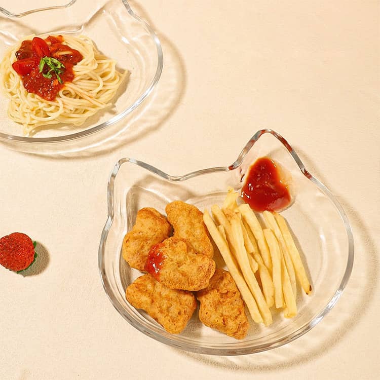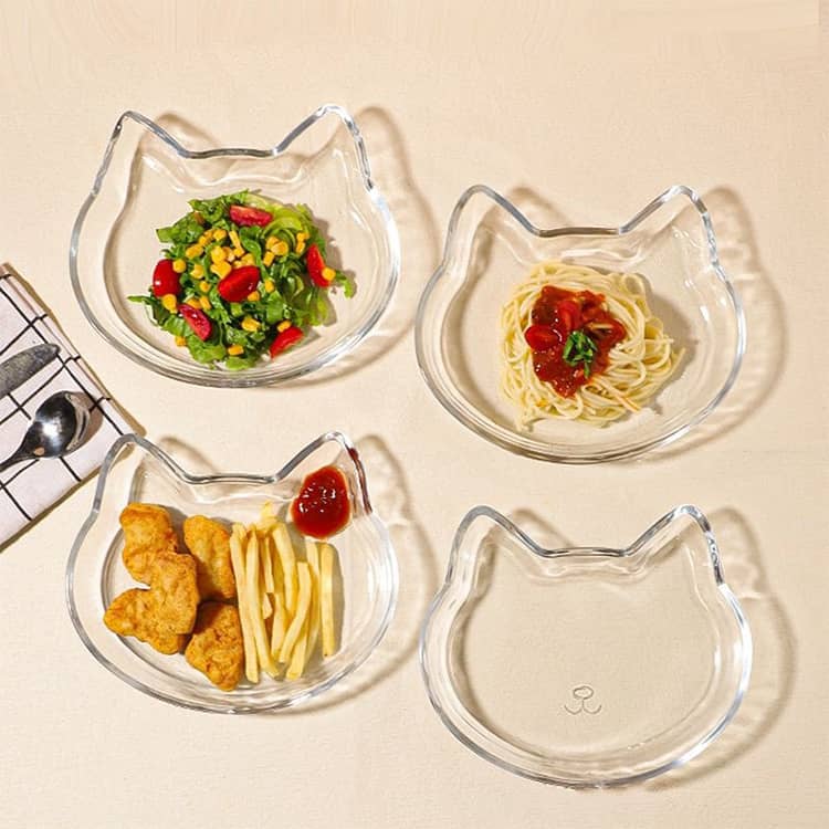 透明なガラス素材が料理を美しく引き立て、カフェのようなおしゃれな雰囲気を演出。来客用としても重宝し、猫好きな方への誕生日祝いや新築祝いなどのギフトにもおすすめのアイテムです。
