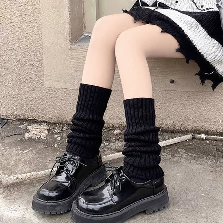 40 50 70cm レッグウォーマー あったか ロング丈 ルーズソックス リブ レッグウェア 足首ウォーマー くしゅくしゅ 靴下 ソックス 冷え取り 黒 白 灰 中学生 高校生 地雷系 レディース