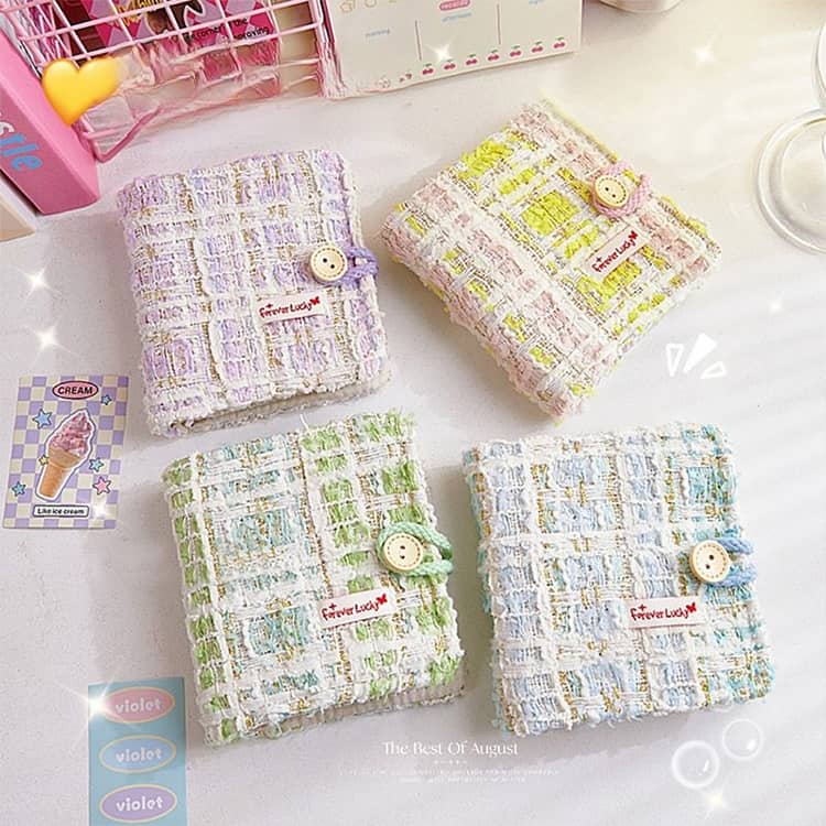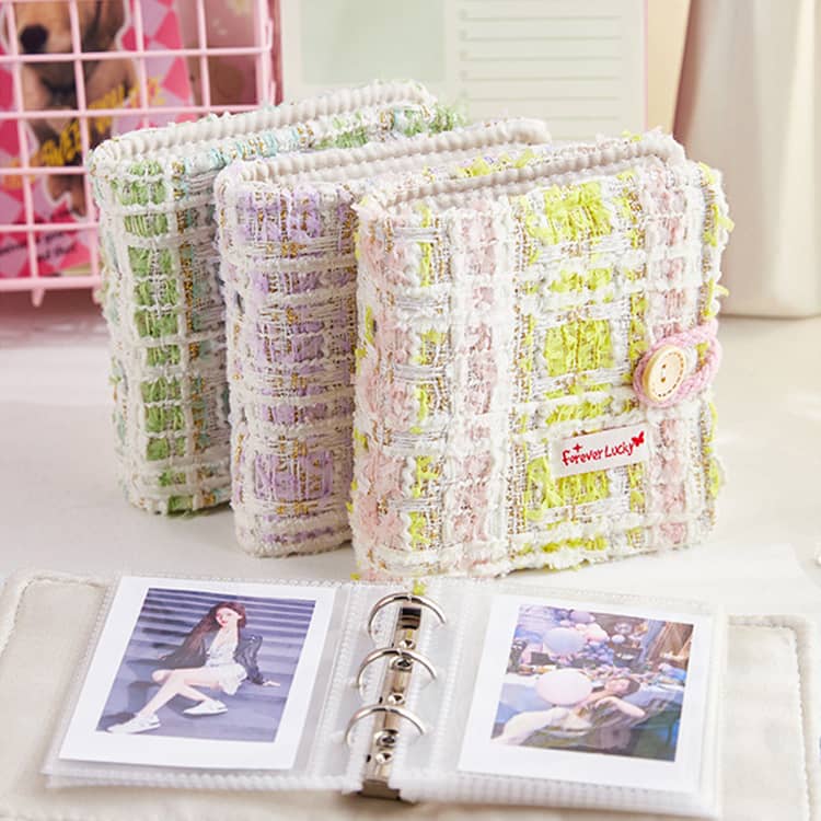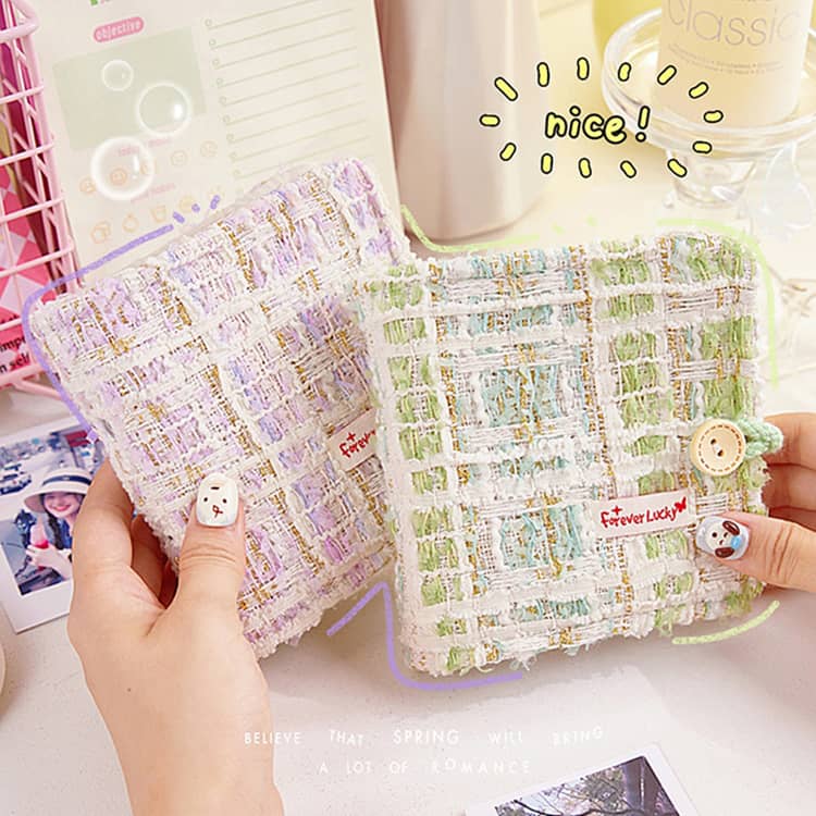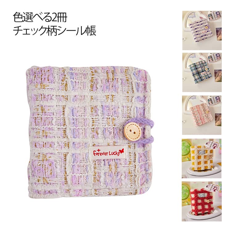 シール帳 透明 リフィル20枚付き a8 ミニ バインダー もこもこ チェック柄シール帳 ツイード シール手帳 はがせる シール台紙 カードスリーブ かわいい おしゃれ 女の 透明シール帳