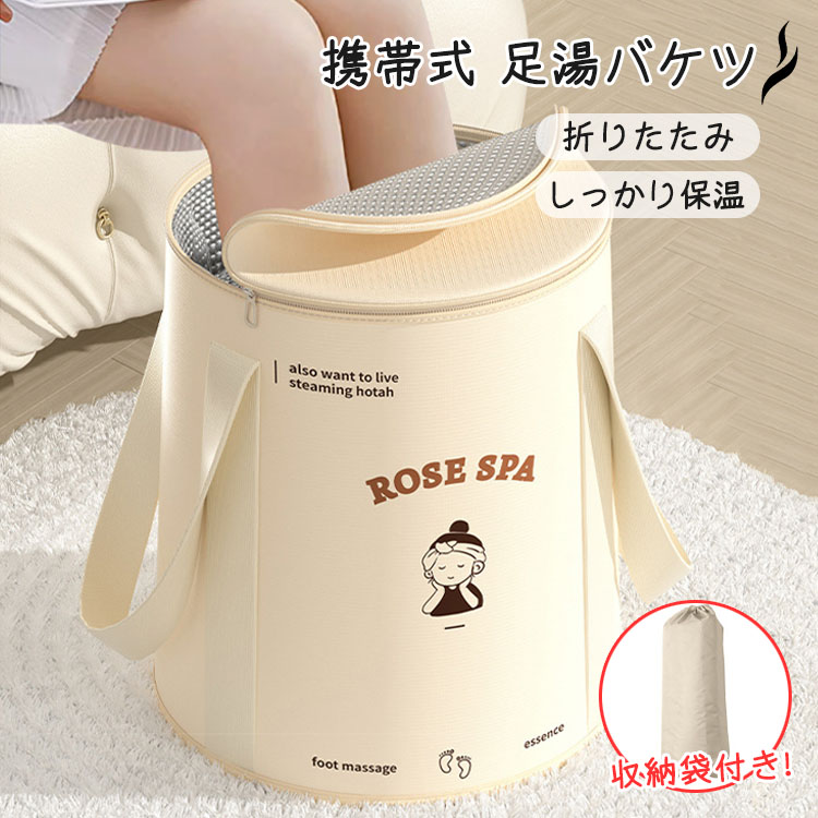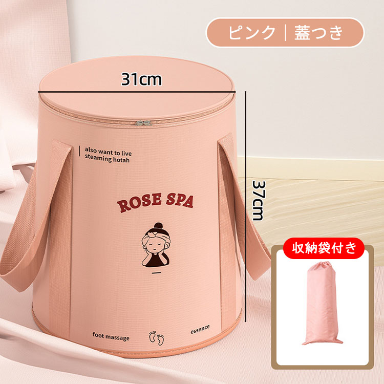 足湯 バケツ 折りたたみバケツ フット ベージュ ピンク 蓋つき 膝を覆う
