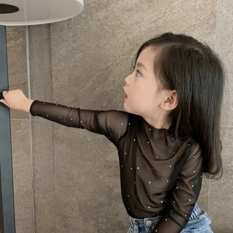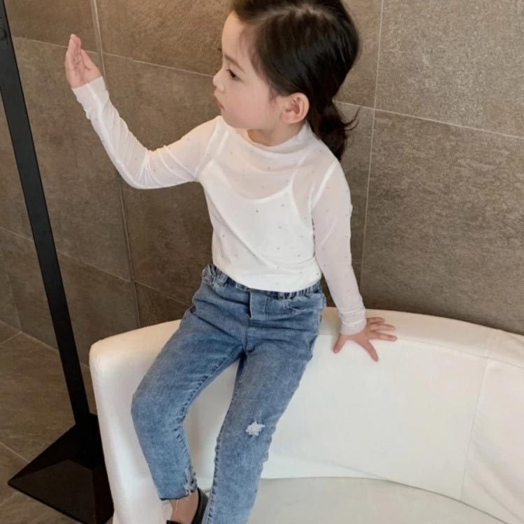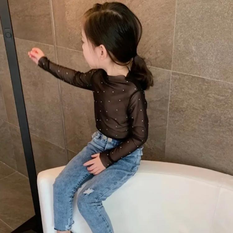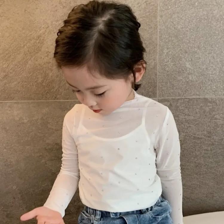 シャツ キッズ服 シアートップス 女の子 シースルー インナー 花柄 レース付き 日焼け対策 子供服 ラッシュガード ハイネック 薄手 長袖 スパンコール レイヤード風 可愛い 透け感