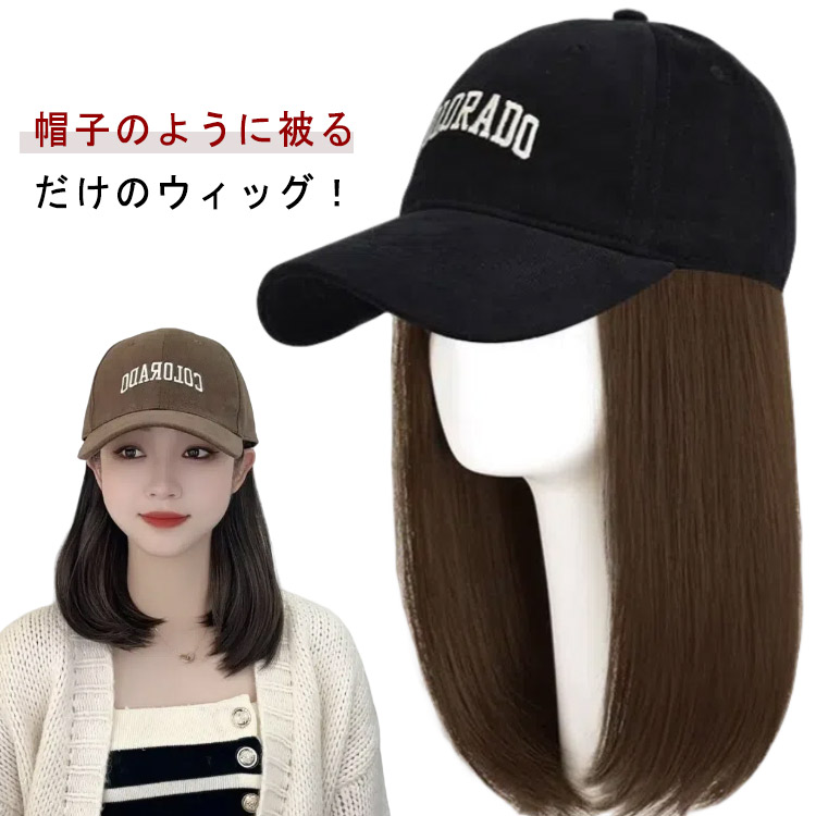 髪付き帽子 ウィッグ レディース 帽子 バッグ 小物 ブランド雑貨 豊富 髪色ブラックブラウン 髪色ダークブラウン 髪色ライトブラウン ブラウンキャップ ブラックキャップ