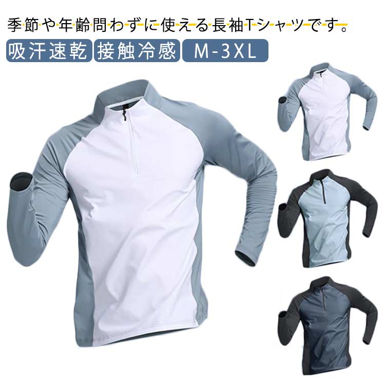 ラッシュガード メンズ 長袖 UVカット 吸汗速乾 接触冷感 ハーフジップ トレーナー 薄手 スポーツ Tシャツ トレーニング ゴルフ 釣り プルオーバー 春夏 ストレッチ 大きいサイズ 無地