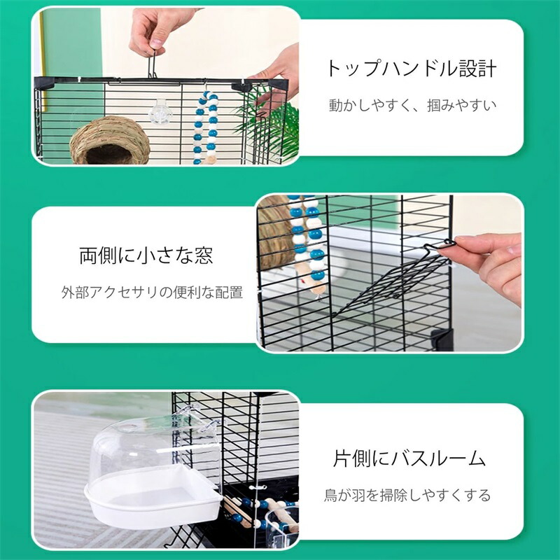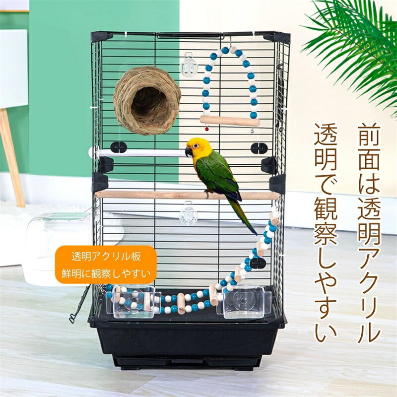 鳥籠 鳥かご インコ 大型 複数飼い 豪華ケージ 大きい 鳥小屋 スタンド付きバードケージ ブランコ付き フルハウス 透明アクリルパネル セキセイインコ おしゃれ ペット用品