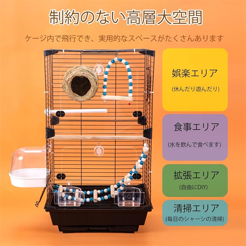 特に中型および大型の鳥に適しています。広々としたスペースで、ペットは自由に羽を広げて飛んで遊ぶことができます。日常生活でも休息でも、この広い空間でペットは自分の快適ゾーンを見つけることができます。