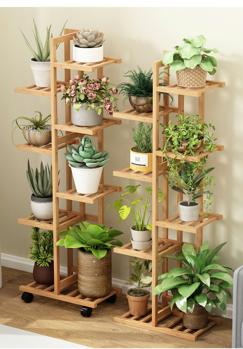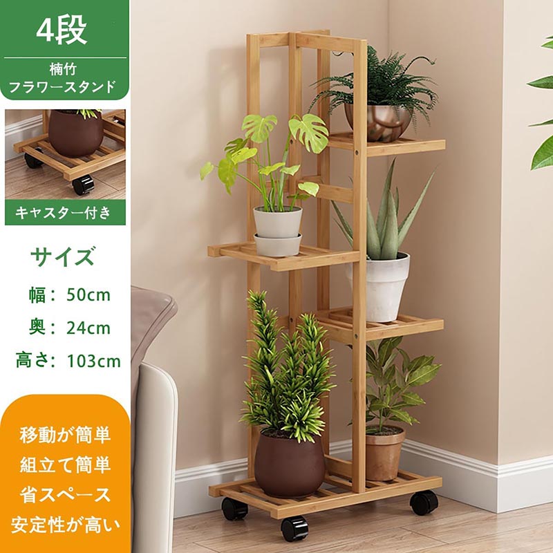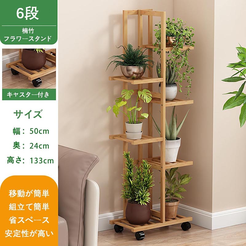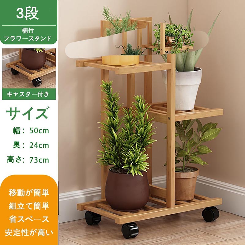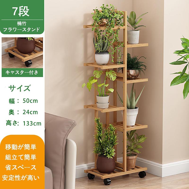 フラワースタンド 花台 プランタースタンド 3段 4段 5段 7段 竹製 ガーデニング 多肉植物スタンド キャスター付き 移動ラクラク 園芸ラック 観葉植物 多肉 花瓶置き台 室内 簡 鉢植えスタンド