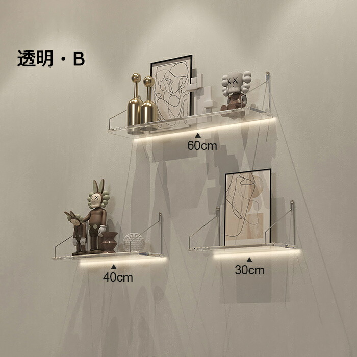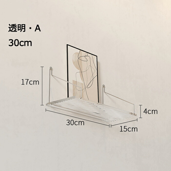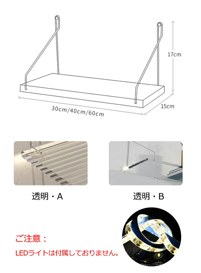 ウォールシェルフ 賃貸 取り付け アク 透明・A 透明・B 30cm×1枚 40cm×1枚 60cm×1枚 30cm1枚+40cm1枚+60cm1枚