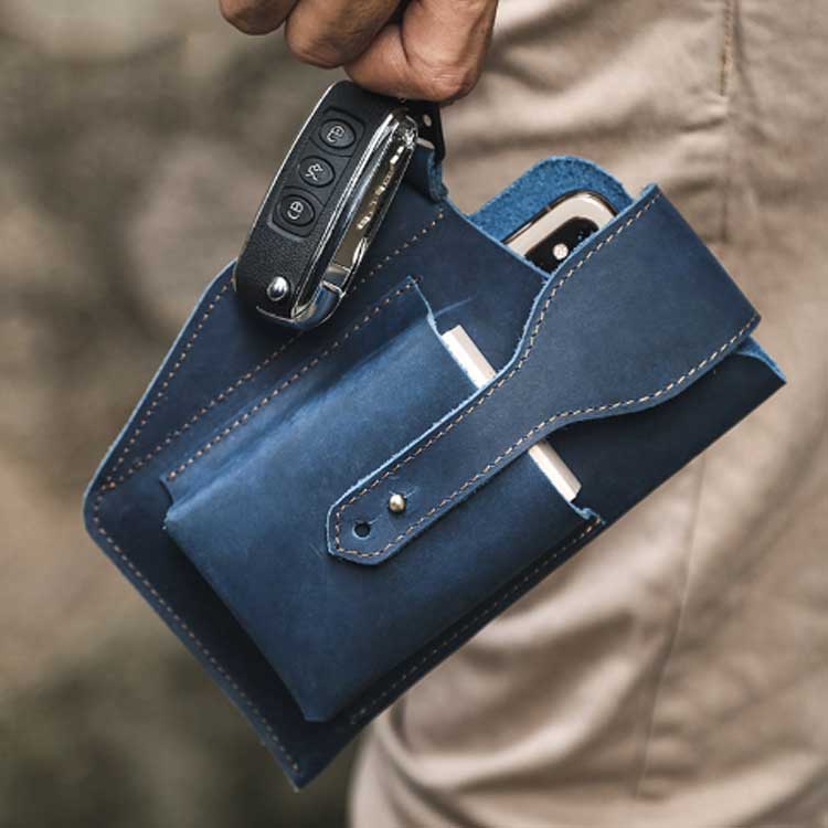 上質な風合い、コンパクトに身につけるメンズスマホポーチ
